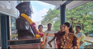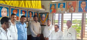 शहरातील शि.म.ज्ञानदेव मोहेकर महाविद्यालयातील पुतळ्यास सेवानिवृत्त प्रा.बापू मेटे यांच्या हस्ते पुष्पहार अर्पण करण्यात आले.