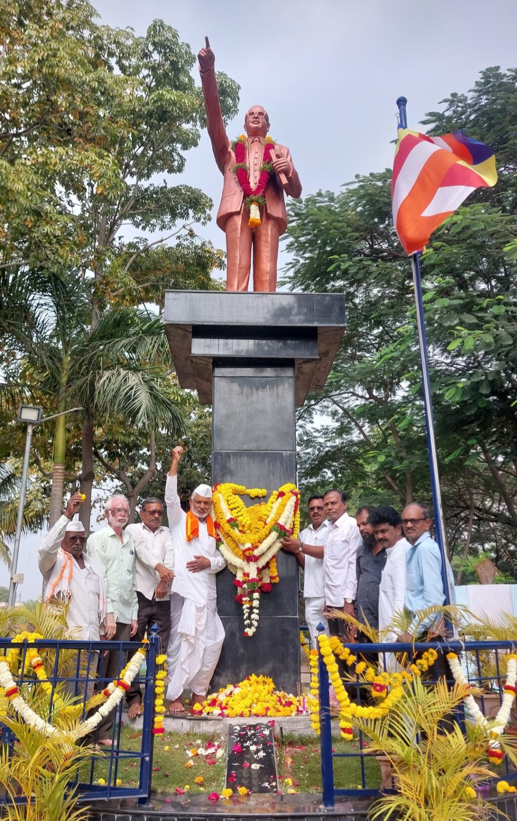 कळंब – विश्वरत्न डॉ.बाबासाहेब आंबेडकर यांच्या महापरिनिर्वाण दिनानिमित्त ज्येष्ठ नागरिक यांच्यावतीने बोलोद्यान येथील डॉ.बाबासाहेब आंबेडकर यांच्या पुतळ्यास अभिवादन कार्यक्रम घेण्यात आला. याप्रसंगी ज्येष्ठ नागरिक महासंघाचे जिल्हाध्यक्ष महादेव महाराज अडसूळ, गुणवंत कामगार संघटनेचे महाराष्ट्र प्रदेश सचिव अच्युतराव माने,ज्ञानदा बहुउद्देशीय सामाजिक संस्थेचे अध्यक्ष बंडू भाऊ ताटे,मधुकर शीलवंत,माधवसिंग राजपूत, सतपाल बनसोडे,किशोर वाघमारे,बाळासाहेब हौसलमल, रफिक शेख यांनी अभिवादन केले.