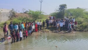 भाटशिरपुरा – भाई नारायणराव लोमटे माध्यमिक विद्यालय भाटशिरपुरा व कृषी विभाग कळंब यांच्या संयुक्त विद्यमानाने भाट शिरपुरा येथील नदीवर वनराई बंधारा विद्यार्थ्यांच्या, शिक्षकांच्या,कृषी विभागाच्या सहाय्याने वनराई बंधारा करण्यात आला. यावेळी वनराई बंधाऱ्याचे फायदे तालुका कृषी अधिकारी भागवत सरडे यांनी सर्व विद्यार्थ्यांना सांगितले.तसेच यावेळी कृषी पर्यवेक्षक भुजंग लोकरे,कृषी सहाय्यक चंदनशिव, संस्थेचे सचिव बाळकृष्ण धस, मुख्याध्यापक सुरेश टेकाळे शाळेतील सर्व विद्यार्थी व विद्यार्थिनी,शिक्षक व शिक्षकेत्तर कर्मचारी यांनी सर्वांनी वनराई बंधारा उभारण्यासाठी परिश्रम घेतले. वनराई बंधारा उभारल्यानंतर शाळेतील सर्व विद्यार्थ्यांना कृषी विभागातर्फे केळी वाटप करण्यात आल्या. यावेळी कार्यक्रमाचे सूत्रसंचालन व आभार प्रदर्शन सहशिक्षक एस.जी.सूर्यवंशी यांनी केले.
