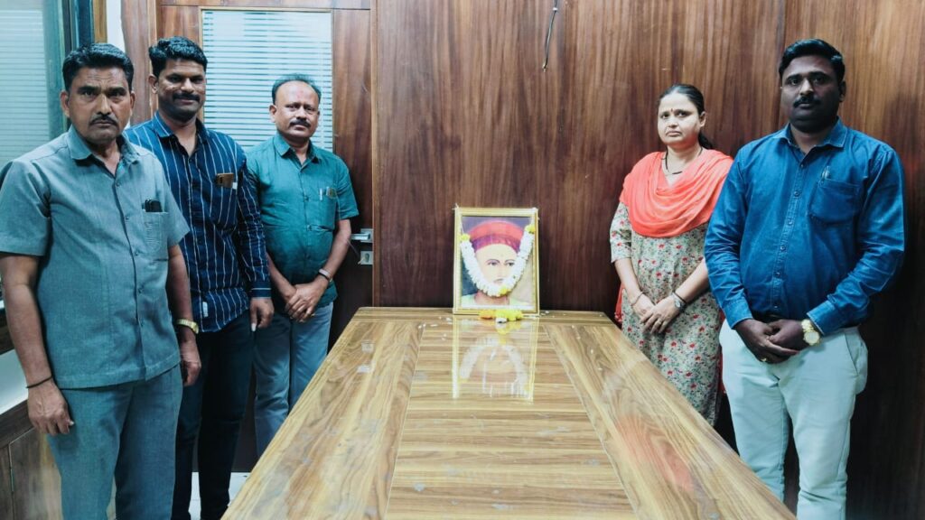 धाराशिव (जिमाका) – मराठी वृत्तपत्र सृष्टीचे जनक दर्पणकार आचार्य बाळशास्त्री जांभेकर यांना दि.६ जानेवारी २०२५ रोजी पत्रकार दिनानिमित्त जिल्हा माहिती कार्यालय येथे आयोजित कार्यक्रमात त्यांच्या प्रतिमेचे पूजन करून अभिवादन करण्यात आले. जिल्हा माहिती अधिकारी विवेक खडसे यांनी बाळशास्त्री जांभेकर यांच्या प्रतिमेला पुष्पहार अर्पण केला.यावेळी कार्यालयातील कर्मचारी नंदू पवार,चित्रा घोडके,अनील वाघमारे,श्रीकांत देशमुख व युवा कार्य प्रशिक्षणार्थी प्रमोद राऊत उपस्थित होते.उपस्थितांनी देखिल प्रतिमेला पुष्प वाहून अभिवादन केले.