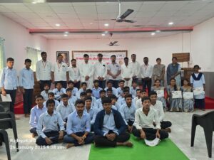 या कार्यक्रमाला सामाजिक कार्यकर्ते नानासाहेब धाकतोडे,डिकसळ ग्रामपंचायत सदस्य महादेव अंबिरकर हे पाहुणे म्हणून उपस्थित होते. या कार्यक्रमात प्रशिक्षणार्थी अभिषेक यादव यांनी गीत सादर केले तर प्रशिक्षणार्थी प्रथमेश आंबिरकर,छात्राध्यापिका स्नेहल खोडसे,प्रीती महाद्वार,साक्षी कवडे यांनी मनोगत व्यक्त केली. या कार्यक्रमाचे प्रास्ताविक मराठी विभाग प्रमुख प्रा.श्रीकांत पवार यांनी सुत्रसंचालन सांस्कृतिक विभाग प्रमुख प्रा.अविनाश घोडके तर आभार निदेशक अविनाश म्हेत्रे यांनी मानले. यावेळी प्रा.मोहिनी शिंदे,निदेशक राजकुमार शिंदे,दिक्षा गायकवाड,विनोद कसबे,सोनाली ढमाले व सर्व विद्यार्थ्यांची उपस्थिती होती.