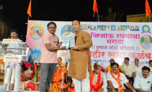 संभाजी ब्रिगेडचे कार्याध्यक्ष सौरव खेडेकर यांचे विचार मंचावर सा.साक्षी पावन ज्योत परिवाराच्या वतीने कार्यकारी संपादक प्रा.अविनाश घोडके यांनी सा.साक्षी पावनज्योतचा अंक आणि प्रबुद्ध रंगभूमी बहुउद्देशीय संस्थेचे अध्यक्ष सुभाष घोडके लिखित “विरंगुळा” हे पथनाट्य व अग्रलेखांचा संग्रह असलेला पुस्तक देऊन सन्मान करण्यात आले.
