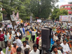 सोलापूर (शैलेश वेदपाठक) – अनुसूचित जाती-जमातींच्या हक्क अधिकारांसाठी वंचित बहुजन आघाडी सोलापूर-धाराशिव-माढा विभागाच्या वतीने दि.२३ जून २०२५ रोजी सोलापूर येथे जनआक्रोश मोर्चाचे आयोजन करण्यात आले.या मोर्चास वंचित बहुजन आघाडीचे युवा नेते सुजात आंबेडकर यांच्या नेतृत्वाखाली चार पुतळा पार्क चौक ते पुनम गेट जिल्हा परिषद कार्यालयापर्यंत मार्गक्रमण करण्यात आले. मोर्चास दुपारी १ वाजता प्रारंभ झाला.प्रारंभी सुजात आंबेडकर यांनी चार पुतळे व डॉ.बाबासाहेब आंबेडकर यांच्या पुतळ्यास पुष्पहार अर्पण करून मोर्चास सुरुवात केली.या मोर्चात सोलापूर, धाराशिव,माढा विभागासह परिसरातील वंचित बहुजन आघाडीचे कार्यकर्ते,पदाधिकारी, महिला,भारतीय बौद्ध महासभा व समता सैनिक दलाचे कार्यकर्ते मोठ्या संख्येने सहभागी झाले होते. मोर्चा घोषणा व मागण्यांचे फलक घेऊन पुनम गेट जिल्हा परिषद कार्यालयासमोर पोहोचला.या वेळी सुजात आंबेडकर यांनी उपस्थितांना मार्गदर्शन केले. ते म्हणाले की, “ईव्हीएम मशीनद्वारे महाराष्ट्र विधानसभा निवडणुकीत तब्बल ७६ लाख मतं कोठून आली याचा खुलासा निवडणूक आयोगाने करावा. तसेच अनुसूचित जाती-जमातींच्या निधीचा अन्यत्र वापर होऊ नये म्हणून कायदा करावा व या संदर्भात श्वेतपत्रिका काढावी” अशा प्रमुख मागण्या या मोर्चाच्या माध्यमातून मांडण्यात आल्या. “राष्ट्रीय अध्यक्ष श्रद्धेय बाळासाहेब आंबेडकर यांनी निवडणूक आयोगास या संदर्भात पत्र लिहून खुलासा मागितला आहे, मात्र निवडणूक आयोग माहिती व डेटा देण्यास टाळाटाळ करत आहे. म्हणूनच आम्ही रस्त्यावर उतरून जनतेला जागृत करण्याचा निर्णय घेतला आहे” असे सुजात आंबेडकर यांनी सांगितले. ते पुढे म्हणाले, “भाजप म्हणजे नागनाथ आहे तर काँग्रेस सापनाथ आहे.हे मुद्दे विरोधकांनीच जनतेसमोर आणायला पाहिजे होते.मात्र काँग्रेस,शिवसेना व राष्ट्रवादी या विषयावर गप्प बसून आहेत.त्यामुळेच या सत्ताधारी व विरोधकांच्या संगनमताचा पर्दाफाश करण्यासाठी वंचित बहुजन आघाडी रस्त्यावर लढा लढेल” असा इशारा त्यांनी दिला. कार्यक्रमास राष्ट्रीय कार्यकारिणी सदस्य डॉ.नितीन ढेपे,राज्य उपाध्यक्ष प्रा.सोमनाथ साळुंखे, राज्य प्रवक्ता ॲड.अरुण जाधव, युवा प्रदेश कार्यकारिणी सदस्य अमोल लांडगे,सोलापूर जिल्हाध्यक्ष चंद्रशेखर मडीखांबे, धाराशिव जिल्हा सरचिटणीस बाबासाहेब जानराव,माढा विभाग जिल्हाध्यक्ष राहुल चव्हाण यांच्यासह अनेक मान्यवर उपस्थित होते. तसेच धाराशिव जिल्ह्यातून धनंजय सोनटक्के,शीतल चव्हाण, विद्यानंद वाघमारे,आर.एस. गायकवाड,अंकुश लोखंडे, रवीकिरण बनसोडे,बाबा वाघमारे, अनिल हजारे,कुणाल मस्के, तानाजी बनसोडे,राम गायकवाड, किरण बनसोडे, मुकुंद लगडे, 