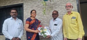 कळंब – मराठवाड्यातील हजारो विद्यार्थ्यांना दर्जेदार शिक्षण देऊन त्यांच्या जीवनमानात आमूलाग्र बदल घडवणारे शिक्षण महर्षी कै. ज्ञानदेव मोहेकर गुरुजी यांचे वृत्तपत्रांतील स्वप्न साकार करण्यासाठी निर्भिड व अभ्यासू व्यक्तिमत्व असलेले सुभाष घोडके यांच्या लेखणीने साकारलेले ‘सा.साक्षी पावनज्योत’चे मार्गदर्शक तथा कर्तव्यदक्ष सचिव डॉ.अशोकराव मोहेकर व संचालिका प्रा.अंजली मोहेकर हे अमेरिकेत सांस्कृतिक व शैक्षणिक अभ्यासासाठी गेले होते. दोन महिन्याच्या अमेरिकेतील रहिवासानंतर दि.१५ जुलै २०२५ रोजी ते मायदेशी परतल्यावर ‘साक्षी पावनज्योत’ परिवाराच्या वतीने त्यांचा मोहेकर कॉलेजच्या कॅन्टीनमध्ये सत्कार करण्यात आला.तेथील अनुभव कथन करीत असताना,अमेरिकेत एकही बेरोजगार नसून एकही भीक मागणारा व्यक्ती आढळला नाही.त्याचबरोबर करार पद्धतीने जमीन कसण्यासाठी मिळत असून शेती मालाचा भाव तिथला शेतकरी ठरवतो.सेंद्रीय पद्धतीने शेती माल पिकवला जातो.उद्योग धंदयाशिवाय अवांतर धंदे करण्यासाठी तिथे कुणाला वेळच मिळत नसून सुसंस्कार युक्त लोकांची जीवनपद्धती खूप आवडली असल्याचे डॉ.अशोक दादांनी सांगितले. या सन्मानप्रसंगी मुख्य संपादक सुभाष घोडके व उपसंपादक माधवसिंग राजपूत यांच्या हस्ते विशेषांक,शाल व गुलाब पुष्प देऊन त्यांचा गौरव करण्यात आला.