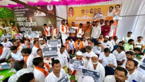 धाराशिव –महायुती सरकारमधील मंत्र्यांच्या भ्रष्ट आणि बेजबाबदार कारभाराविरोधात शिवसेना (उद्धव बाळासाहेब ठाकरे) पक्षाच्या वतीने सोमवारी (ता. ११) जिल्हाधिकारी कार्यालयासमोर एक अनोखे व हटके आंदोलन करण्यात आले.मंत्र्यांना ‘कलंकित’ आणि मुख्यमंत्र्यांना ‘हतबल’ संबोधत केलेल्या या आंदोलनाने नागरिकांचे लक्ष वेधून घेतले. या आंदोलनास आमदार कैलास पाटील,आमदार प्रवीण स्वामी, माजी आमदार दयानंद गायकवाड, जिल्हाप्रमुख रणजित पाटील यांची प्रमुख उपस्थिती होती. विविध मंत्र्यांच्या कार्यपद्धतीवर प्रतिकात्मक टीका करण्यासाठी आंदोलकांनी पत्त्यांचा डाव खेळला, पैसे आणि ‘ड्रग्ज’चे प्रतिकात्मक वाटप केले. माजी कृषिमंत्री व आताचे क्रीडामंत्री माणिकराव कोकाटे यांच्यावर निशाणा साधत पत्याचा खेळ रंगविण्यात आला. मंत्री भरत गोगावले यांना ‘जादूटोणा करणारे मंत्री’ म्हणून संबोधत त्यांच्या नावाने अघोरी पूजा मांडण्यात आली व “ओम भट स्वाहा” अशा घोषणांनी परिसर दणाणून गेला. महसूलमंत्री चंद्रशेखर बावनकुळे यांचा निषेध म्हणून ‘ड्रग्ज’ लिहिलेल्या पुड्या फेकण्यात आल्या. सरकारविरोधी घोषणा लिहिलेले फलक हातात घेऊन “कलंकित मंत्री, हतबल मुख्यमंत्री” अशा घोषणांचा गजर करण्यात आला. आंदोलनात शिवसेना (उद्धव बाळासाहेब ठाकरे) पक्षाचे सर्व पदाधिकारी, कार्यकर्ते व शिवसैनिक मोठ्या संख्येने उपस्थित होते.