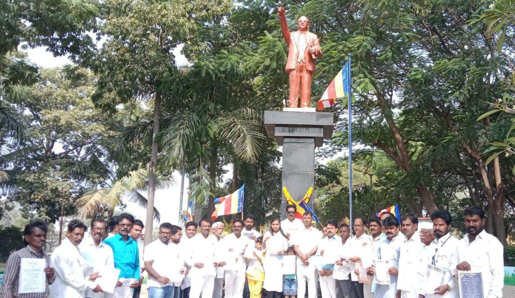 कळंब – २६ नोव्हेंबर २०२३ रोजी संविधान दिनानिमित्त शहरातील विश्वरत्न डॉ.बाबासाहेब आंबेडकर पूर्णाकृती पुतळा परिसर येथे बौद्ध समाजातील विविध संघटना,राजकीय पक्ष,सामाजिक संस्थेतील सदस्यांनी संविधान उद्देशिकेचे सामुदायीक वाचन करून पुतळ्यास पुष्पहार अर्पण करण्यात आला.
