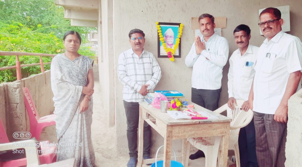ज्ञान प्रसार प्राथमिक विद्यालय मोहा येथे शिक्षण महर्षी ज्ञानदेव मोहेकर गुरुजींच्या प्रतिमेचे पूजन