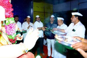 याप्रसंगी शिवसेनेचे तालुकाप्रमुख शिवाजी कापसे, प्रा.दिलीप पाटील, मुस्ताक कुरेशी, रोहन पारख, बंडोपंत दशरथ, शाश्त्रज्ञ डॉ.पंढरे, राजाभाऊ मुढे, अध्यक्ष प्रताप शिंदे, सचिव अतुल कवडे, गोविंद चौधरी, यशवंत दशरथ, बबनराव वाघमारे,बाबुशेठ लोढा, अभयशेठ देवडा,रवी नरहिरे, ज्ञानेश्वर पाटील, बाळासाहेब धस,शाम खबाले,हभप कवडे महाराज, रुकसाना भाभी बागवान, मिराताई चोंदे, सुनंदाताई भोसले, शोभाताई मस्के, सलमाभाभी सौदागर, सा.साक्षी पावनज्योत कायदेशीर सल्लागार अँड.शकुंतला फाटक, अँड.दिलीपसिंह देशमुख, अशोक काटे,प्रा.संजय घुले, अतुल गायकवाड, नागनाथ घुले, फहाद चाऊस, बाबासाहेब कोठावळे, आनंदशेठ बलाई, चंद्रकांत मुंढे, मनोज कदम, तय्यब कुरेशी, अशोक भोसले, रोहित कापसे, जिलानीभाई कुरेशी, दादा खंडागळे, सुभाष शिनगारे, किशोर गोरे, सुरेश आळणे, सतीश बप्पा टोणगे, रमेश अंबिरकर, ओंकार कुलकर्णी, भास्कर खोसे, बालाजी सुरवसे, माधवसिंह रजपूत, अजित गुरव, समीर सय्यद, विजय पारवे,बाळकृष्ण गुरसाळे, बालाजी कापसे आदींसह गणेशभक्त उपस्थित होते.