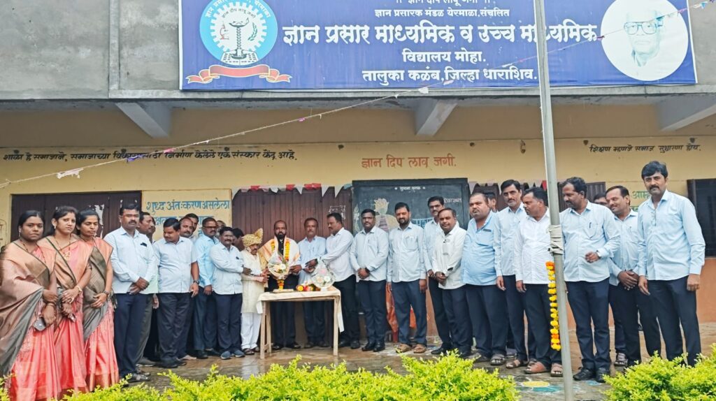 मोहा – ज्ञान प्रसार माध्यमिक व उच्च माध्यमिक विद्यालय,मोहा येथील मुख्याध्यापक तथा प्राचार्य अविनाश मोरे यांना नुकताच शिक्षण महर्षी ज्ञानदेव मोहेकर मल्टीस्टेट को-ऑपरेटिव्ह क्रेडिट सोसायटी लिमिटेड,मोहा तर्फे प्रदान करण्यात येणारा “आदर्श शिक्षक तथा मुख्याध्यापक पुरस्कार” प्राप्त झाला.या उल्लेखनीय यशाबद्दल विद्यालयातील सर्व कर्मचाऱ्यांच्या वतीने मोरे यांचा सत्कार संस्थेचे प्रशासकीय अधिकारी रमेशभाऊ मोहेकर यांच्या हस्ते करण्यात आला. सत्काराला उत्तर देताना प्राचार्य अविनाश मोरे म्हणाले –“हा पुरस्कार केवळ माझा नाही, तर सर्व कर्मचाऱ्यांचा आणि विद्यार्थ्यांचा आहे.या पुरस्कारामुळे आपल्याला काम करण्यासाठी नवीन ऊर्जा मिळाली असून,ही एक नवी सुरुवात आहे.” कार्यक्रमाचे सूत्रसंचालन व आभार प्रदर्शन सहशिक्षक सतीश मडके यांनी केले.याप्रसंगी पर्यवेक्षक सतीश कानगुडे,प्रा.सुनील साबळे यांच्यासह विद्यालयातील सर्व कर्मचारी व विद्यार्थी उपस्थित होते.