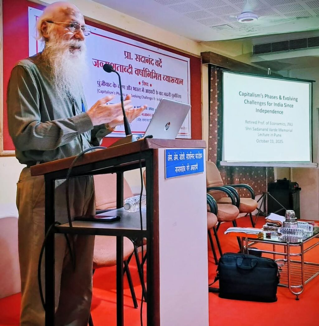 कळंब – स्वातंत्र्यसैनिक,माजी शिक्षणमंत्री आणि समाजवादी नेते प्रा.सदानंद वर्दे यांच्या जन्मशताब्दी वर्षानिमित्त एस.एम. जोशी सोशलिस्ट फाउंडेशनने दि.११ ऑक्टोबर २०२५ रोजी वार शनिवारी सायंकाळी विशेष व्याख्यानाचे आयोजन केले. कार्यक्रमाचे प्रमुख व्याख्याते ज्येष्ठ अर्थशास्त्रज्ञ प्रा.डॉ.अरुणकुमार होते,ज्यांनी ‘पूंजीवाद के विभिन्न चरण और आझाद भारत में उभरती चुनौतियां’ या विषयावर सखोल विवेचन केले.