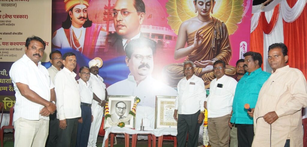 धाराशिव – धाराशिव शहरात 69 व्या धम्मचक्र प्रवर्तन दिनानिमित्त भीमनगर येथे शनिवार,11 ऑक्टोबर रोजी प्रसिध्द कवी दंगलकार नितीन चंदनशिवे यांचे दलित चळवळीतील योगदान आणि बंद पडलेली चळवळ याविषयी व्याख्यान संपन्न झाले. यावेळी उपासक-उपासिका मोठ्या संख्येने उपस्थित होते. राष्ट्रवादी काँग्रेस पार्टीचे सांस्कृतिक विभागाचे प्रदेश सरचिटणीस विशाल शिंगाडे यांनी धम्मचक्र प्रवर्तन दिनानिमित्त चार दिवसीय विविध कार्यक्रमांचे आयोजन केले आहे.पहिल्या दिवशी शनिवारी सायंकाळी प्रसिध्द कवी नितीन चंदनशिवे यांनी दलित चळवळीतील योगदान आणि बंद पडलेली चळवळ या विषयावर उपस्थितांना व्याख्यान दिले. कार्यक्रमाचे उद्घाटन ज्येष्ठ नागरिक कमलाकर बनसोडे, धनंजय वाघमारे,अनिल बनसोडे, मिलींद डावरे यांच्या हस्ते करण्यात आले.कार्यक्रमाचे प्रास्ताविक विशाल शिंगाडे यांनी केले तर आभार सुभाष सोनवणे यांनी मानले.कार्यक्रमाच्या यशस्वीतेसाठी सुहास झेंडे, अविनाश शिंगाडे,सुमित चिलवंत, प्रसेजनजित शिंगाडे,यशवंत शिंगाडे,जितेंद्र बनसोडे,महेंद्र जेटीथोर,दिलीप सोनवणे,बंटी शिंगाडे,संतोष वाघमारे,विकी नाईकवाडी,प्रमोद ढवळे,प्रशांत कांबळे,सम्राट कांबळे,सम्राट वाघमारे,विजय उंबरे,प्रवीण सोनवणे,रणजित माळाळे,यश माळाळे,उमेश खंदारे,सुरेश देवकुळे,बापू साबळे,सारिपुत शिनगारे आदींनी परिश्रम घेतले. या कार्यक्रमास भीमनगर व परिसरातील नागरिक मोठ्या संख्येने उपस्थित होते.