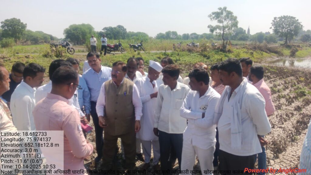कळंब – मराठवाडा कृषी विद्यापीठ,परभणीचे कुलगुरू डॉ. इंद्र मनी यांनी दि.१४ ऑक्टोबर २०२५ रोजी (मंगळवार) अतिवृष्टीमुळे बाधित झालेल्या कळंब तालुक्यातील खोंदला परिसराला भेट देऊन प्रत्यक्ष पाहणी केली.अतिवृष्टीमुळे शेतजमिनीवरील सुपीक माती वाहून गेल्याने शेतकऱ्यांचे प्रचंड नुकसान झाले आहे. या पार्श्वभूमीवर डॉ.इंद्र मनी यांनी संबंधित शेतकऱ्यांशी संवाद साधत,अशा नैसर्गिक आपत्तीच्या परिस्थितीत तोंड देण्यासाठी पिक पद्धतीत कोणते बदल करता येतील,तसेच भविष्यातील नुकसान टाळण्यासाठी कोणत्या शाश्वत शेती पद्धती अवलंबाव्यात याबाबत सविस्तर मार्गदर्शन केले. त्यांनी वाहून गेलेल्या मातीचे नमुने स्वतःगोळा करून ते विश्लेषणासाठी परभणी येथील कृषी प्रयोगशाळेत पाठविले. या अभ्यासातून त्या भागातील मातीची रासायनिक गुणवत्ता, सेंद्रिय घटकांचे प्रमाण आणि पुनर्भरणासाठी आवश्यक उपाययोजना निश्चित करण्यात येणार आहेत. या पाहणीदरम्यान जिल्हा कृषी अधिकारी महादेव असलकर, तालुका कृषी अधिकारी भागवत सरडे,उपकृषी अधिकारी बप्पासाहेब पाटील आदी मान्यवर तसेच खोंदला ग्रामस्थ मोठ्या संख्येने उपस्थित होते. कुलगुरूंच्या या पाहणीमुळे शेतकऱ्यांमध्ये नवीन आशा निर्माण झाली असून, विद्यापीठाच्या मार्गदर्शनातून पुनःशेती सक्षम करण्यासाठी ठोस कृती आराखडा तयार होण्याची अपेक्षा व्यक्त केली जात आहे.
