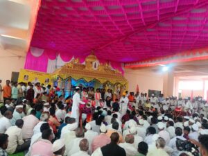 डिकसळ (माधवसिंग राजपूत) – गुरुवर्य रामचंद्र बोधले महाराज यांच्या ४३ व्या पुण्यतिथीनिमित्त रामचंद्र महाराज बोधले संस्थानच्या वतीने डिकसळ येथे ८ ऑक्टोबर ते १५ ऑक्टोबरपर्यंत अखंड हरिनाम सप्ताह व बोधले महाराज लीलामृत पारायण सोहळा मोठ्या भक्तिभावात सुरू आहे. या आठवड्यातील मुख्य आकर्षण म्हणजे ह.भ.प.प्रकाश महाराज बोधले यांचे “गुलालाचे कीर्तन” ज्यामध्ये महाराष्ट्र विधान परिषदेचे सभापती राम शिंदे आणि मराठा संघर्ष योद्धा मनोज जरांगे पाटील यांच्या उपस्थितीने सोहळ्याला विशेष भक्तिमय स्वरूप लाभले. ह.भ.प. प्रकाश महाराज बोधले यांनी कीर्तनातून संत परंपरेचा गौरव करताना सांगितले की, “संत हे उपकार नव्हे, तर कर्तव्य म्हणून समाजसेवा करतात; त्यांचे संपूर्ण जीवन परमेश्वरसेवेसाठी अर्पण असते.” तर संघर्षयोद्धा मनोज जरांगे पाटील म्हणाले, “मी समाजातील वंचित, उपेक्षित घटकांसाठी शेवटपर्यंत लढणार आहे; माझा संघर्ष जातीवादासाठी नसून शिक्षण व न्यायासाठी आहे.” विधान परिषदेचे सभापती राम शिंदे यांनी वारकरी संप्रदाय हा समाजसंस्काराचा पाया आहे असे सांगत बोधले महाराज संस्थानच्या कार्याचे कौतुक केले. या प्रसंगी बोधले संस्थानच्या वतीने परमेश्वर महाराज बोधले, अण्णासाहेब बोधले, रामेश्वर बोधले, मुख्याध्यापिका बोधले मॅडम व सरपंच पुष्पा धाकतोडे यांनी मान्यवरांचा शाल व पुष्पहार देऊन सत्कार केला. कार्यक्रमात धनंजय देशमुख यांचाही सत्कार करण्यात आला. अखेर गुलाल,फुले,आरती आणि महाप्रसादाने कार्यक्रमाची सांगता झाली. कार्यक्रमानंतर शिवसेना नेते अजित (दादा) पिंगळे, तालुकाध्यक्ष लक्ष्मीकांत हुलजुते, भाजप तालुकाध्यक्ष दत्ता साळुंखे, संभाजी ब्रिगेड मराठवाडा संघटक अतुल भैय्या गायकवाड, अशोक चोंदे, सरपंच पुष्पा धाकतोडे आदी मान्यवर उपस्थित होते. संस्थानच्या विकासकामांसाठी निवेदन विधान परिषदेचे सभापती राम शिंदे यांना देण्यात आले. सप्ताहातील कीर्तन सेवेत समाधान महाराज शर्मा (केज), भागवत महाराज बदाडे (माजलगाव),ज्ञानेश्वर महाराज पठाडे (कर्जत),निवृत्ती महाराज देशमुख (इंदौरीकर),उमेश महाराज दशरथे,सोसेवा महाराज सानप आणि जयवंत बोधले महाराज यांनी कीर्तन सेवा केली. समाप्तीच्या दिवशी १५ ऑक्टोबर रोजी सकाळी ७ ते ९.३० दरम्यान डिकसळ परिसरातील ११ गावांच्या वारकऱ्यांचा सहभाग असलेली दिंडी श्रीगुरू रामचंद्र बोधले महाराजांच्या पादुकांसह रथातून प्रदक्षिणा करणार आहे. यानंतर सकाळी १०.३० ते १२.३० ह.भ.प. प्रकाश बोधले महाराज यांचे काल्याचे कीर्तन, “श्री गुरू रामचंद्र बोधले महाराज सेवा पुरस्कार” वितरण व महाप्रसादाने सप्ताह सोहळ्याची सांगता होणार आहे.