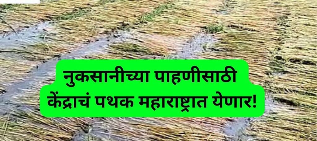 नुकसानीची पाहणीसाठी केंद्रीय पथक ४ व ५ नोव्हेंबर रोजी जिल्ह्यात