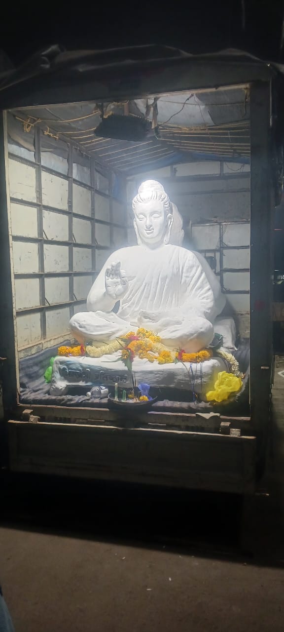 खामसवाडी – खामसवाडी येथील भीमनगर परिसरात तथागत गौतम बुद्ध यांच्या मूर्तीची भव्य मिरवणूक आणि प्रतिष्ठापना सोहळा उत्साहात पार पडला.ही मूर्ती भिमप्रेमी प्रतिष्ठान,सोलापूर यांच्या वतीने भेट स्वरूपात देण्यात आली. या मिरवणुकीत बौद्ध अनुयायी, युवक,महिला व नागरिक मोठ्या संख्येने सहभागी झाले होते. गावभर “जय भीम” आणि “बुद्धं शरणं गच्छामि” या घोषणांनी वातावरण दुमदुमून गेले. कार्यक्रमास माणिक काकडे, चंद्रसेन सावंत,उत्तम सावंत तसेच भिम आर्मी तालुका अध्यक्ष अमोल सोनटक्के उपस्थित होते. या वेळी राहुल सावंत (सर) आणि रतन सावंत यांनी बौद्ध धम्म, समता आणि बंधुता यावर मार्गदर्शन करून उपस्थितांना प्रेरणा दिली. भिमप्रेमी प्रतिष्ठान सोलापूरच्या या सामाजिक व बौद्धिक उपक्रमाचे उपस्थितांनी कौतुक केले असून, खामसवाडी परिसरात समतेचा आणि प्रबोधनाचा संदेश या प्रतिष्ठापनेतून दिला गेला.