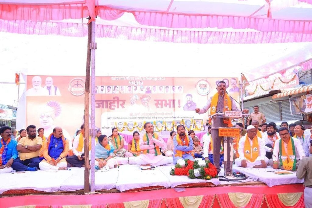 *महिलांसाठी सबलीकरण, रोजगाराला प्राधान्य – राणी उर्फ सुनंदा कापसे* महायुतीच्या नगराध्यक्ष पदाच्या उमेदवार राणी उर्फ सुनंदा कापसे यांनी आपल्या भाषणात सांगितले की,शहराचा सर्वांगीण विकास,महिलांचे सबलीकरण,सुशिक्षित बेरोजगारांना रोजगाराच्या संधी यावर विशेष भर देणार आहेत. त्यांनी सांगितले की,“आप्पांच्या नगराध्यक्षपदाच्या काळात लावलेले सीसीटीव्ही कुठे गायब झाले? दुष्काळी परिस्थितीत त्यांनी नागरिकांना पाण्याची टंचाई भासू दिली नाही.ही सेवा अखंड सुरू ठेवू.” या सभेला भाजपचे तालुकाध्यक्ष अरुण चौधरी,दत्ता साळुंखे, शहराध्यक्ष मकरंद पाटील,भाजप जिल्हा उपाध्यक्ष शिवाजी गिड्डे, शिवसेना तालुका अध्यक्ष लक्ष्मीकांत हुलजुते,रिपाई आठवले गटाचे बंडू (भाऊ) बनसोडे,शिवाजी शिरसाट,अनिल हजारे यांसह महायुतीचे अनेक मान्यवर उपस्थित होते.