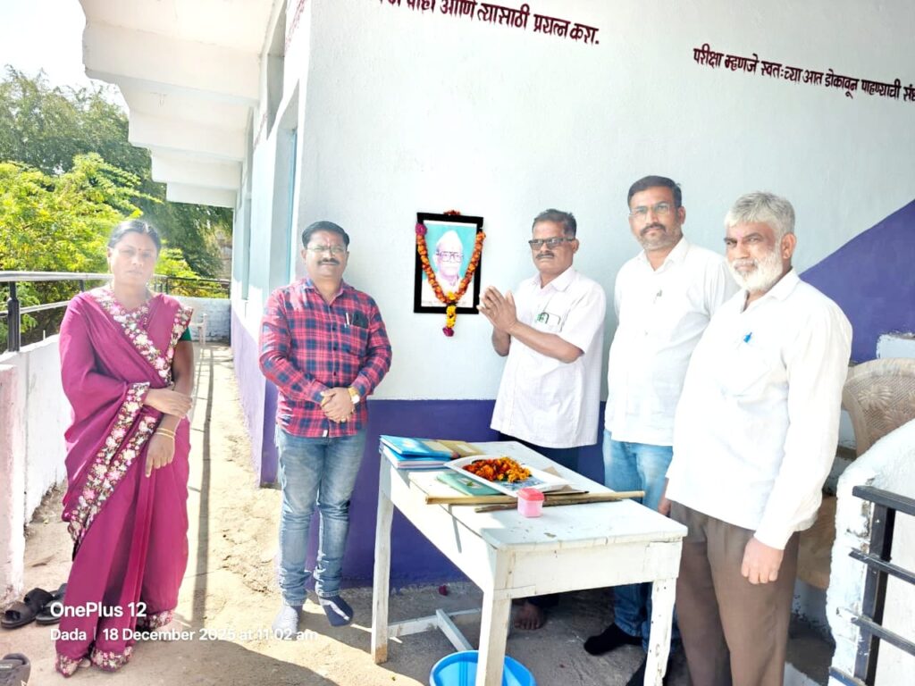 ज्ञान प्रसार प्राथमिक विद्यालय मोहा येथे शिक्षण महर्षी ज्ञानदेव मोहेकर गुरुजींच्या प्रतिमेचे पूजन