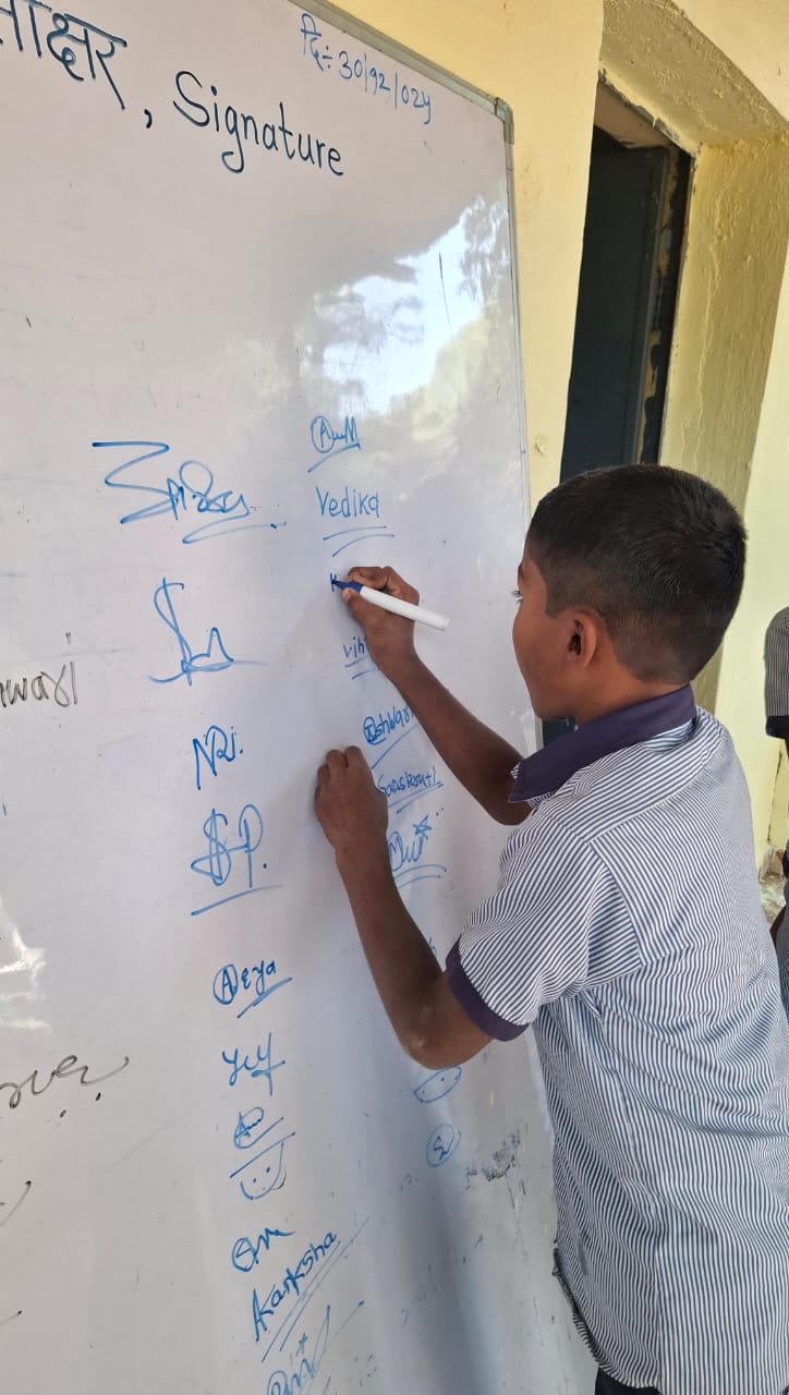 कळंब – भविष्यातील तरुण पिढीमध्ये स्वाक्षरी ही व्यक्तिमत्त्वाचे प्रतिबिंब असते या संकल्पनेतून जिल्हा परिषद प्राथमिक शाळा आढाळा येथे “सही-स्वाक्षरी-सिग्नेचर” ही अभिनव कार्यशाळा आयोजित करण्यात आली.उपक्रमशील मुख्याध्यापक राजेंद्र बिक्कड यांच्या मार्गदर्शनाखाली ही कार्यशाळा पार पडली. कार्यक्रमाच्या सुरुवातीला उपक्रमशील शिक्षक तुकाराम कऱ्हाळे व शिवनंदा स्वामी यांनी डिजिटल माध्यमातून विविध क्षेत्रातील मान्यवरांची स्वाक्षरी विद्यार्थ्यांसमोर सादर केली.यात लोकनेते शरद पवार,गोपीनाथराव मुंडे,विलासराव देशमुख,ज्येष्ठ लेखक पु.ल.देशपांडे,व्यंगचित्रकार राज ठाकरे,माजी मुख्यमंत्री यशवंतराव चव्हाण,अभिनेते अशोक सराफ,क्रिकेटपटू सचिन तेंडुलकर,भारताचे पंतप्रधान नरेंद्र मोदी,मुख्यमंत्री देवेंद्र फडणवीस, खेळाडू विराट कोहली आदींच्या स्वाक्षऱ्यांचा समावेश होता. आपली स्वाक्षरी ही सुंदर,स्पष्ट व व्यक्तिमत्त्व दर्शवणारी असावी या भावनेतून विद्यार्थ्यांनी व्हाईटबोर्ड व फलकावर स्वाक्षऱ्या केल्या. ज्या विद्यार्थ्यांच्या स्वाक्षऱ्यांमध्ये त्रुटी होत्या त्यांना मार्गदर्शन करून सुधारित स्वाक्षरी करण्यास प्रवृत्त करण्यात आले.विद्यार्थ्यांनी या उपक्रमात उत्साहाने सहभाग घेत मोठ्या आनंदात कार्यशाळा अनुभवली. या उपक्रमासाठी शिवव्याख्याते महादेव खराटे,शिक्षक तुकाराम कऱ्हाळे,शिवनंदा स्वामी,बलभीम राऊत व स्वयंसेवक बापू हगारे यांनी विशेष परिश्रम घेतले.