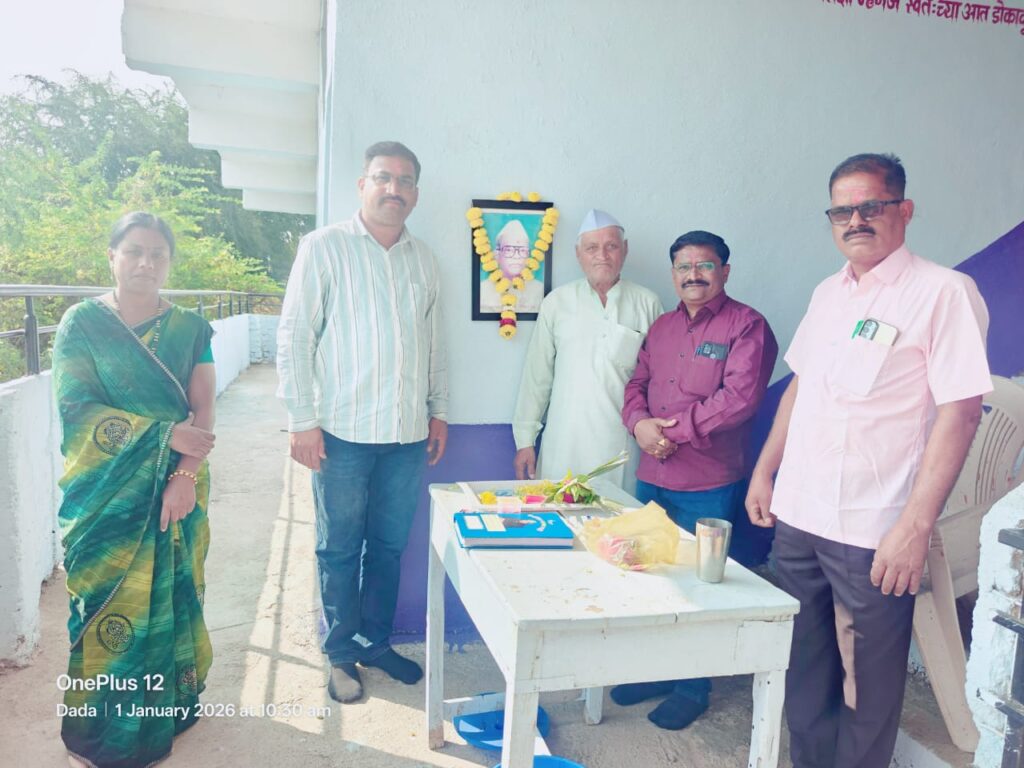 ज्ञान प्रसार प्राथमिक विद्यालय मोहा येथे शिक्षण महर्षी ज्ञानदेव मोहेकर गुरुजींच्या प्रतिमेचे पूजन