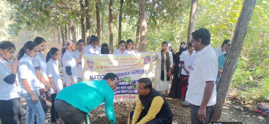 कळंब — डॉ. बाबासाहेब आंबेडकर मराठवाडा विद्यापीठ, छत्रपती संभाजीनगर व शिक्षण महर्षी ज्ञानदेव मोहेकर महाविद्यालय, कळंब यांच्या संयुक्त विद्यमाने युवकांसाठी आयोजित विशेष राष्ट्रीय सेवा योजना (रासेयो) श्रमसंस्कार शिबिर अंतर्गत विविध उपक्रम राबविण्यात येत आहेत. शिबिराच्या पाचव्या दिवशी मौजे डिकसळ येथे स्वयंसेवकांनी पर्यावरण संवर्धनाचा संदेश देत वृक्षारोपण केले तसेच शोषखड्ड्यांची प्रात्यक्षिके घेण्यात आली. यानंतर शिबिरात आयोजित बौद्धिक सत्रात डॉ. ईश्वर राठोड यांनी विद्यार्थ्यांना शाश्वत विकास आणि तरुण या विषयावर मार्गदर्शन केले.देशाचा शाश्वत विकास घडविण्याची मोठी जबाबदारी तरुणांच्या खांद्यावर असून ती त्यांनी राष्ट्रकार्य म्हणून स्वीकारली पाहिजे,असे ते म्हणाले. आजचा तरुण हा देशाचा कणा असून तोच भविष्य घडवू शकतो, असा विश्वास त्यांनी व्यक्त केला. कार्यक्रमाच्या अध्यक्षीय समारोपात डॉ.नागनाथ आदाटे यांनी शेती व्यवसाय व व्यवस्थापन या विषयावर सखोल मार्गदर्शन केले. शेतकरी उत्पादनात यशस्वी असला तरी योग्य व्यवस्थापनाच्या अभावामुळे तो आर्थिकदृष्ट्या मागे पडतो, असे त्यांनी नमूद करत आधुनिक शेती व बाजारपेठेतील व्यवस्थापनाचे महत्त्व स्पष्ट केले. या कार्यक्रमाचे सूत्रसंचालन प्रा. अंकुशराव यांनी केले तर आभार प्रा.डॉ.मीनाक्षी जाधव यांनी मानले. कार्यक्रमासाठी रासेयो कार्यक्रमाधिकारी प्रा. डॉ. ताटीपामुल, प्रा. डॉ. चांदोरे, अंतर्गत गुणवत्ता कक्षाच्या समन्वयक अर्चना मुखेडकर, तसेच प्रा. डॉ. सावंत, प्रा. डॉ. भोसले, प्रा. डॉ. चंदनशिवे, प्रा. डॉ. वाघमारे, प्रा. शिंदे, प्रा. तांबोळी, प्रा. पालके आदींसह मोठ्या संख्येने विद्यार्थी व स्वयंसेवक उपस्थित होते. हा उपक्रम यशस्वी पार पाडण्यासाठी महाविद्यालयाचे अधीक्षक हनुमंत जाधव, तसेच श्री. बंडगर व अर्जुन वाघमारे यांनी विशेष परिश्रम घेतले. या श्रमसंस्कार शिबिरामुळे विद्यार्थ्यांमध्ये पर्यावरण जागृती, सामाजिक भान आणि शाश्वत विकासाबाबत सकारात्मक दृष्टिकोन निर्माण होत असल्याचे चित्र दिसून आले.
