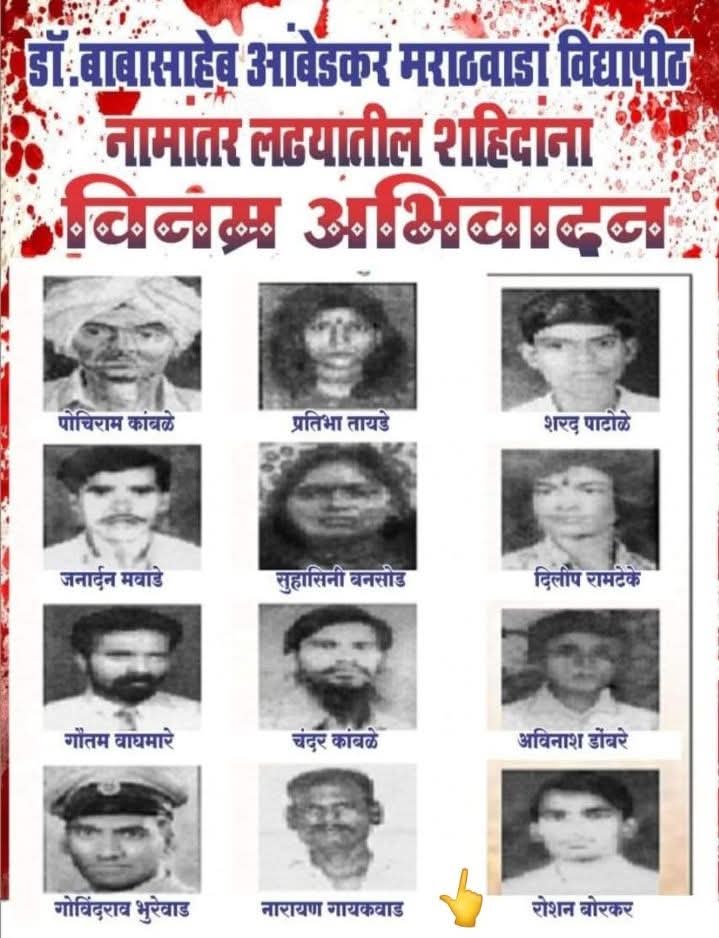 मराठवाड्यात उभी राहिलेली जी सामाजिक क्रांती अर्थ-रणजीत म्हणून ओळखली जाते,ती केवळ एका विद्यापीठाच्या नावापुरती मर्यादित नव्हती.ती दलित-बहुजन समाजाच्या अस्मितेची, स्वाभिमानाची आणि इतिहासावरच्या हक्काची लढाई होती. मराठवाडा विद्यापीठाला विश्वरत्न डॉ.बाबासाहेब आंबेडकरांचे नाव देण्याची मागणी जेव्हा पुढे आली, तेव्हा ती सत्ताधारी आणि जातीय वर्चस्ववादी शक्तींना अस्वस्थ करणारी ठरली.कारण बोधिसत्व महामानव डॉ.बाबासाहेबांचे नाव म्हणजे हजारो वर्षांच्या अन्यायाला दिलेले थेट आव्हान होते. त्यामुळेच या मागणीला विरोध करत मराठवाडाभर हिंसाचार,बहिष्कार आणि दडपशाहीचा उद्रेक झाला. पण या अंधारातही भीमसैनिकांच्या संघर्षाची मशाल पेटलेली होती. या संघर्षात अनेक तरुण, कार्यकर्ते आणि सामान्य कष्टकरी लोक रस्त्यावर उतरले. ते कोणत्याही सत्तेचे संरक्षण घेऊन नव्हते, तर परमपूज्य डॉ.बाबासाहेब आंबेडकरां विचारांची ढाल घेऊन लढत होते. या लढ्यात काहींनी आपल्या प्राणांची आहुती दिली. दिलीप सूर्यभान रामटेके हे अशाच शूर भीमसैनिकांपैकी एक होते. नामांतर आंदोलनाच्या उग्र काळात ते गोळीबारात शहीद झाले.त्यांचा मृत्यू हा केवळ एका व्यक्तीचा अंत नव्हता,तर तो संपूर्ण चळवळीला अधिक आक्रमक आणि निर्धाराने उभे राहण्याची प्रेरणा देणारा ठरला. त्यांच्या रक्ताने या आंदोलनाला नवी ताकद मिळाली. ज्ञानेश्वर बुधाजी साखरे हेही या संघर्षातील एक तेजस्वी नाव होते. अत्याचार,बहिष्कार आणि दहशतीच्या वातावरणातही त्यांनी मागे हटणे नाकारले. विश्वरत्न बोधीसत्व डॉ.बाबासाहेब आंबेडकरांचे नाव विद्यापीठाला मिळावे,ही त्यांची एकनिष्ठ भूमिका होती.संघर्षाच्या आगीत झोकून देताना त्यांनी आपले प्राण गमावले,पण त्यांचा लढवय्या वारसा आजही भीमसैनिकांच्या स्मरणात जिवंत आहे. रोशन बोर्कर हा तरुण देखील या रणात शहीद झाला.तो केवळ आंदोलनात सहभागी नव्हता,तर आपल्या अस्तित्वासाठी,आपल्या आत्मसन्मानासाठी लढणारा एक सामान्य माणूस होता. त्याच्या शहादतीने हे सिद्ध झाले की हा लढा केवळ नेत्यांचा नव्हता, तर तो रस्त्यावरच्या माणसांचा होता. प्रज्ञासूर्य कांतदर्शी डॉ.बाबासाहेबांच्या नावासाठी जीव देण्याची तयारी असलेली पिढी त्या काळात उभी राहिली होती. डोमाजी भिकाजी कुत्तरमारे यांचे नावही या बलिदानी यादीत अजरामर आहे. त्यांनी जातीय अन्यायाविरुद्ध उभे राहत संघर्षाची मशाल हातात घेतली आणि अखेर त्या मशालीसाठी स्वतःचे जीवन अर्पण केले.त्यांची शहादत ही मराठवाड्यातील दलित-बहुजन समाजाच्या जिद्दीची साक्ष देणारी होती.