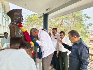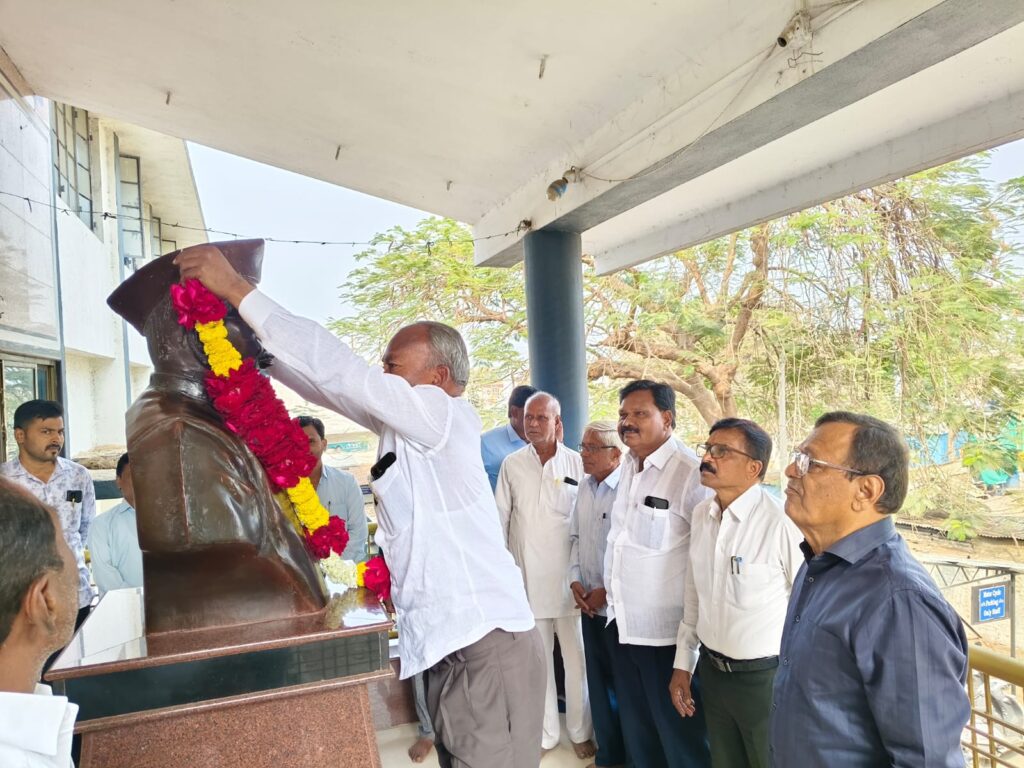 कळंब– ज्ञान प्रसारक मंडळ, येरमाळा येथील कर्तव्यदक्ष सचिव डॉ.अशोकराव मोहेकर यांच्या प्रेरणेने व महाविद्यालयाचे प्राचार्य डॉ.हेमंत भगवान यांच्या मार्गदर्शनाखाली शहरातील शिक्षण महर्षी ज्ञानदेव मोहेकर महाविद्यालय,कळंब येथे संस्थापक अध्यक्ष कै.ज्ञानदेव मोहेकर यांच्या प्रतिमेस पुष्पहार अर्पण करून भावपूर्ण अभिवादन करण्यात आले. दि.२९ जानेवारी २०२६ (गुरुवार) रोजी झालेल्या या कार्यक्रमात विद्याभवन हायस्कूल, कळंब येथील मुख्याध्यापक व्यंकट कुंभार यांच्या हस्ते प्रतिमेस पुष्पहार अर्पण करण्यात आले. याप्रसंगी कर्तव्यदक्ष सचिव डॉ. अशोकराव मोहेकर, उपसचिव गव्हाणे,संचालक डॉ.संजय कांबळे,प्राचार्य डॉ. हेमंत भगवान यांच्यासह महाविद्यालयातील सर्व कर्मचारी उपस्थित होते. उपस्थितांनी कै.ज्ञानदेव मोहेकर यांच्या शैक्षणिक कार्याचा गौरव करीत त्यांच्या स्मृतीस आदरांजली वाहिली.