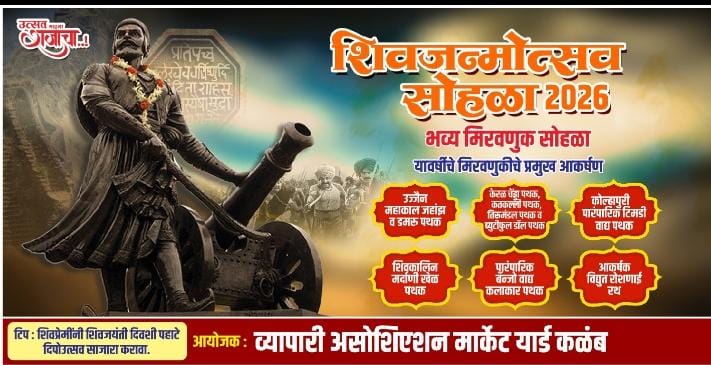 कळंब – स्वराज्याचे संस्थापक छत्रपती शिवाजी महाराज यांच्या जयंतीनिमित्त कळंब येथील कृषी उत्पन्न बाजार समिती व व्यापारी असोसिएशन मार्केट यार्डच्या वतीने यंदा शिवजन्मोत्सव सोहळा २०२६ भव्य आणि दिव्य स्वरूपात साजरा करण्यात येणार आहे. विविध पारंपरिक,सांस्कृतिक आणि आकर्षक कार्यक्रमांनी हा सोहळा उत्साहात रंगणार आहे. शिवजयंती सोहळा सुरू झाल्यापासून बाजार समितीत दरवर्षी शिस्तबद्ध आणि देखणी मिरवणूक काढण्याची परंपरा कायम ठेवण्यात आली आहे. गतवर्षीप्रमाणे यंदाही भव्य नियोजन करण्यात आले असून, कळंब शहरात पाहण्याजोगा सोहळा अनुभवता येणार आहे. यंदाच्या कार्यक्रमात उज्जैन येथील जहाज पथक व डमरू पथक, केरळ येथील झेंडा पथक, देवदेवतांच्या वेशभूषेतील पारंपरिक कलाकार सहभागी होणार आहेत.कोल्हापूर येथील पारंपरिक दिमडी संच विशेष आकर्षण ठरणार असून, शिवकालीन मर्दानी खेळांचे प्रात्यक्षिक सादर करणारे कलाकार,महानाद ढोल-ताशा पथक,लेझीम पथक तसेच इतर पारंपरिक कलावंतांचा सहभाग सोहळ्याची रंगत वाढवणार आहे. संपूर्ण परिसर आकर्षक विद्युत रोषणाईने सजविण्यात येणार असून,उत्सवी वातावरण निर्माण होणार आहे.विविध सांस्कृतिक पथकांना आमंत्रित करून त्यांच्या कलेचा सन्मानही करण्यात येणार आहे. हा भव्य उत्सव सर्व शिवभक्तांसाठी खुला ठेवण्यात आला असून,महाराष्ट्रातील विविध शहर,गाव व तालुक्यातील नागरिकांनी मोठ्या संख्येने उपस्थित राहून सोहळ्याची शोभा वाढवावी,असे आवाहन आयोजकांनी केले आहे.