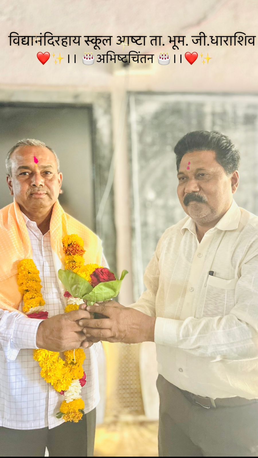 • आष्टा– ज्ञान प्रसारक मंडळ, येरमाळाचे कर्तव्यदक्ष सचिव डॉ. अशोकराव मोहेकर यांच्या प्रेरणेने व मुख्याध्यापक आनंद रामटेके यांच्या मार्गदर्शनाखाली विद्यामंदिर हायस्कूल,आष्टा ता. भूम जि.धाराशिव येथे विद्यार्थीप्रिय गणित शिक्षक शशिकांत मांजरे यांचा वाढदिवस उत्साहात साजरा करण्यात आला.