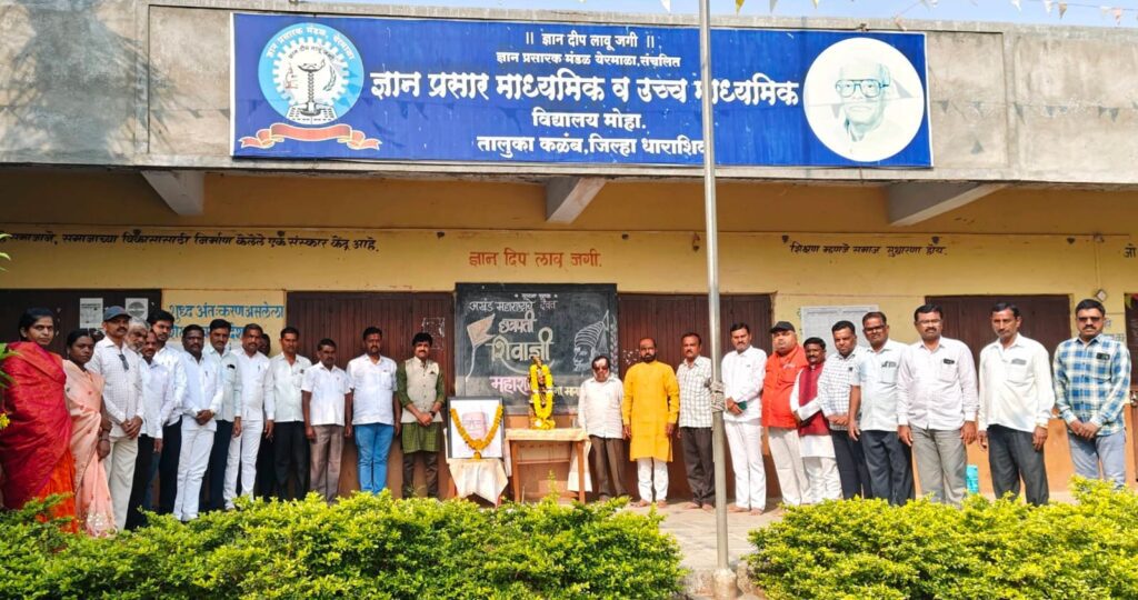 मोहा – दि.१९ फेब्रुवारी २०२६ रोजी छत्रपती शिवाजी महाराज यांच्या जयंतीनिमित्त ज्ञान प्रसार माध्यमिक व उच्च माध्यमिक विद्यालय मोहा येथे उत्साहपूर्ण कार्यक्रमाचे आयोजन करण्यात आले. ज्ञान प्रसारक मंडळ,येरमाळाचे कर्तव्यदक्ष सचिव डॉ.अशोकराव मोहेकर यांच्या प्रेरणेने व प्राचार्य अविनाश मोरे यांच्या मार्गदर्शनाखाली हा कार्यक्रम पार पडला.यावेळी मुख्याध्यापक तथा प्राचार्य अविनाश मोरे यांच्या हस्ते शिवाजी महाराजांच्या प्रतिमेचे पूजन करण्यात आले. कार्यक्रमास संस्थेचे प्रशासकीय अधिकारी रमेशभाऊ मोहेकर, पर्यवेक्षक सतीश कानगुडे, सहशिक्षक धनंजय मडके,प्रा. विठ्ठल जाधव,प्रा.राहुल भिसे,प्रा. रोहित मोहेकर,प्रा.अमित जाधव, सतीश मडके,मंगलदास पवार, जनार्दन भामरे,शैलेश गुरव, कमलाकर शेवाळे,अशोक राऊत, प्रा.दिग्विजय पाटील,प्रा.शेखर गिरी, आर.एन.चिलवंत,प्रा. प्रतिभा सावंत,उषा पांचाळ, अनूप पाटील,धनंजय परजणे,बी. एम.काळे,अंगद आगलावे,ज्ञानोबा टोपे,परमेश्वर पवार,प्रथमेश साडेकर यांच्यासह शिक्षक, शिक्षिका व शिक्षकेतर कर्मचारी उपस्थित होते. शिवाजी महाराजांच्या शौर्य, स्वराज्य संकल्पना आणि लोककल्याणकारी कार्याची आठवण करून देत कार्यक्रम प्रेरणादायी वातावरणात संपन्न झाला.