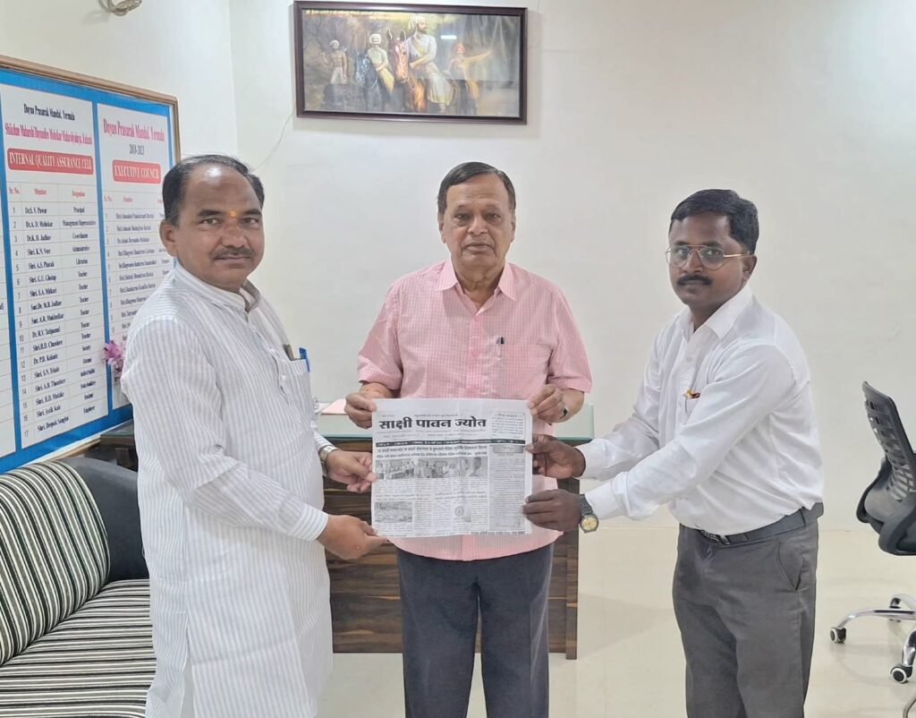 मराठी नववर्ष गुढीपाडव्याच्या पवित्र निमित्ताने दि.१९ मार्च २०२६ रोजी शहरातील शिक्षण महर्षी ज्ञानदेव मोहेकर महाविद्यालयात कार्यकारी संपादक अविनाश घोडके यांनी मा.डॉ.अशोकराव मोहेकर साहेब यांची भेट घेतली.तसेच घोडके यांनी आपल्या कार्यातील विविध अडचणी व भेडसावणाऱ्या समस्यांची मांडणी केल्यानंतर मा. डॉ.अशोकराव मोहेकर साहेब यांनी त्यावर अत्यंत अभ्यासपूर्ण तोडगा सुचवत सकारात्मक व परिणामकारक मार्ग दाखविला. या प्रसंगी शिक्षक चळवळीत सक्रिय भूमिका बजावणारे महाराष्ट्र राज्य राष्ट्रवादी शिक्षक संघटनेचे तालुकाध्यक्ष राजाभाऊ शिंदे सर,प्रा.नामानंद साठे तसेच सहशिक्षक कमलाकर शेवाळे यांचीही उपस्थिती लाभली. ज्ञानाच्या ज्योतीतून समाजप्रबोधनाची अखंड परंपरा जपत,परिवर्तनाचा दीप सतत प्रज्वलित ठेवण्याचे कार्य ‘ज्ञान प्रसारक मंडळ,येरमाळा’ करत असून,हीच परंपरा आगामी काळात अधिक तेजाने उजळत राहील,असा विश्वास यावेळी व्यक्त करण्यात आला.