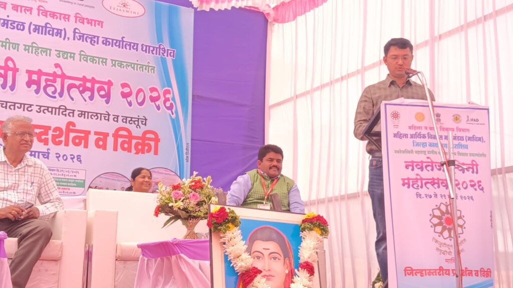 धाराशिव (जिमाका)– महिला बचत गटांच्या माध्यमातून जिल्ह्याचा विकासात्मक पालट होत असून,या उपक्रमात केवळ संख्येपेक्षा गुणवत्तापूर्ण कामाला अधिक महत्त्व आहे,असे प्रतिपादन जिल्हाधिकारी कीर्ती किरण पुजार यांनी केले. महिला आर्थिक विकास महामंडळाच्या बचत गटांची संख्या जरी मोठी नसली तरी त्यांनी केलेले काम अत्यंत दर्जेदार आहे.महिला जिद्दीने व्यवसाय करून आर्थिक उलाढाल वाढवत आहेत.त्यामुळे जिल्ह्यातील सर्व महिलांना बचत गटात समाविष्ट करून एकही कुटुंब या चळवळीपासून वंचित राहू नये, असे आवाहन त्यांनी आज २७ मार्च रोजी केले. धाराशिव शहरातील शहर पोलीस स्टेशनजवळील उस्मानाबाद क्लब मैदानावर महिला आर्थिक विकास महामंडळ (माविम) च्या ५१ व्या वर्धापन दिनानिमित्त ‘नवतेजस्विनी महाराष्ट्र ग्रामीण महिला उद्यम विकास प्रकल्प’ अंतर्गत २७ ते २९ मार्च दरम्यान आयोजित नवतेजस्विनी महोत्सवाच्या उद्घाटनप्रसंगी ते बोलत होते.यावेळी जिल्हा अधीक्षक कृषी अधिकारी राजकुमार मोरे,जिल्हा उद्योग केंद्राचे निरीक्षक साळुंके,प्रभारी महिला व बाल विकास अधिकारी किशोर गोरे,जिल्हा ग्रामोद्योग अधिकारी महादेवी रणदिवे तसेच माविमचे जिल्हा समन्वय अधिकारी सुखदेव चिंचोलीकर आदी प्रामुख्याने उपस्थित होते. जिल्हाधिकारी श्री.पुजार यांनी नमूद केले की,महिला आर्थिक विकास महामंडळाने १९९४ साली स्थापन केलेले बचत गट आजही कार्यक्षमतेने कार्यरत आहेत,हे मोठे यश आहे.बचत गटातील महिला विविध प्रशिक्षण घेतात आणि शासनाच्या विविध योजनांचा लाभ घेऊन स्वतःची प्रगती साधत आहेत.त्यामुळे या बचत गटांमध्ये मोठी क्षमता असून माविमच्या बचत गटातील महिलांनी आपल्या उत्पादनांची विक्री वाढवण्यासाठी बाजारपेठेत (मार्केटिंगमध्ये) अधिक सक्रिय सहभाग घ्यावा,असे त्यांनी आवाहन केले. यावेळी उपस्थित मान्यवरांनीही मार्गदर्शन केले.कार्यक्रमाच्या प्रारंभी फीत कापून उद्घाटन करण्यात आले तसेच माता सावित्रीबाई फुले यांच्या प्रतिमेस पुष्पहार अर्पण करून अभिवादन करण्यात आले.सेंद्रिय शेतीला चालना देण्यासाठी गांडूळ खत,जीवामृत व दशपर्णी अर्क तयार करण्यासाठी प्रत्येकी १४,८०० रुपये प्रमाणे ३५ महिलांना एकूण ५ लक्ष १८ हजार रुपयांचे धनादेश वितरित करण्यात आले.यामध्ये शारदा नेताजी देशमुख,प्रज्ञा संतोष खंडाळकर,महादेवी बालाजी कोराळे व शिल्पा बळीराम लादे यांना प्राथमिक स्वरूपात धनादेश देण्यात आले. कार्यक्रमाचे प्रास्ताविक माविमचे जिल्हा समन्वय अधिकारी सुखदेव चिंचोलीकर यांनी केले.सूत्रसंचालन सीएमआरसीचे सहव्यवस्थापक किशोर टोम्पे यांनी केले,तर उपस्थितांचे आभार सीएमआरसी व्यवस्थापक महादेव पवार यांनी मानले.या कार्यक्रमास बचत 