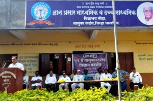 कळंब – विज्ञान प्रदर्शनामुळे विद्यार्थ्यांना दिलेल्या ज्ञानाचे दृढीकरण होऊन विद्यार्थ्यांच्या बुद्धीला चालना मिळते.विज्ञान प्रदर्शनामुळे विज्ञान व गणित विद्यार्थ्यांना अधिक सुलभ समजते असे मत ज्ञान प्रसारक मंडळाचे सचिव डॉ.अशोकराव मोहेकर यांनी मोहा येथील ज्ञान प्रसार माध्यमिक व उच्च माध्यमिक विद्यालयांमध्ये ५१ व्या विज्ञान प्रदर्शन उद्घाटन प्रसंगी व्यक्त केले. ते प्रमुख पाहुणे म्हणून बोलत होते. यावेळी धाराशिव जिल्हा परिषदेचे माजी सदस्य तथा कृषी उत्पन्न बाजार समितीचे संचालक संदीप मडके म्हणाले की, शालेय जीवनामध्ये मी पण विज्ञान प्रदर्शनामध्ये माझे प्रयोग सादर केले होते. याच शाळेमध्ये असताना माझ्या प्रयोगाला तालुक्यात पहिला नंबर मिळाला होता. विज्ञान प्रदर्शनामुळे शेती विषयी तंत्रज्ञान, औद्योगिक विषयक माहिती, नवनवीन प्रयोगाच्या माध्यमातून आपणास मिळत असते. वैज्ञानिक दृष्टिकोन डोळ्यासमोर ठेवून हे प्रयोग सादरीकरण करायचे असते. विज्ञान प्रदर्शनामुळे विद्यार्थ्यांमधील सुप्त गुणांना वाव मिळतो. त्यांच्यात वैज्ञानिक दृष्टिकोन निर्माण होतो. त्यांना नवी दृष्टी मिळते. त्यांच्या भविष्यात येणाऱ्या नवनवीन गोष्टी त्यांना हाताळता येतात असे मत व्यक्त केले. यावेळी ज्ञान प्रसारक मंडळाचे ज्येष्ठ संचालक तात्यासाहेब पाटील, मोहाचे माजी सरपंच रमेश मोहेकर, शिक्षण विस्तार अधिकारी संतोष माळी प्रमुख पाहुणे म्हणून उपस्थित होते. कार्यक्रमाचे अध्यक्ष म्हणून कळंब पंचायत समितीचे गटशिक्षणाधिकारी धर्मराज काळमाते होते. यानीही अध्यक्ष समारोपामध्ये विद्यार्थ्यांना मार्गदर्शन केले. कार्यक्रमाचे प्रास्ताविक ज्ञान प्रसार माध्यमिक व उच्च माध्यमिक विद्यालयाचे मुख्याध्यापक संजय जगताप यांनी केले. यावेळी केंद्रप्रमुख प्रशांत निनाळ, साधन व्यक्ती मैंदाड बी.जी. उपस्थित होते. विज्ञान प्रदर्शन माध्यमिक व प्रार्थमिक शाळा असे दोन गटात घेण्यात आले. माध्यमिक विभागातून एकूण ३२ शाळेने सहभाग घेतला. माध्यमिक गटातून हनुमान विद्यालय घारगाव यांनी प्रथम क्रमांक पटकावला. येथील शिवम गाडे या विद्यार्थ्याने क्लिनिंग मशीन हा प्रयोग सादर केला. तर द्वितीय क्रमांक छत्रपती संभाजी विद्यालय जवळा खुर्द येथील वेदांत रणखांब यांनी सादर केलेला वायरलेस पॉवर ट्रान्समिशने पटकावला. तृतीय क्रमांक ज्ञान प्रसार माध्यमिक व उच्च माध्यमिक विद्यालय मोहा येथील समीक्षा मडके ने सादर केलेला स्मार्ट व्हिलेज या प्रयोगास मिळाला. प्राथमिक विभागातून एकूण ६६ शाळेने सहभाग नोंदवला. प्रथम क्रमांक जिल्हा परिषद प्राथमिक शाळा सौंदाना (आंबा) येथील अस्मिता गायकवाड हिने सादर केलेले जमीन विरहित शेती या