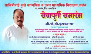 सावित्रीबाई फुले माध्यमिक व उच्च माध्यमिक विद्यालय कळंब चे मुख्याध्यापक तथा प्राचार्य प्रदीर्घ सेवेनंतर सेवानिवृत्त होत आहेत. गेली ३१ वर्षे ते रणसम्राट क्रीडा मंडळ संचलित संस्थेतील सावित्रीबाई फुले माध्यमिक व उच्च माध्यमिक विद्यालय कळंब येथे भूगोल या विषयाचे अध्यापन करत आहेत. बीड जिल्ह्यातील केज तालुक्यातील सुर्डी येथील शेतकरी कौशल्या व ज्ञानोबा कुपकर यांच्या पोटी जन्मलेल्या प्रा.जयचंद कुपकर यांनी इयत्ता पहिली ते चौथी पर्यंत चे शिक्षण सुर्डी येथील जि.प.शाळेत घेऊन त्यांनी पाचवी ते नववी पर्यंत चे शिक्षण विद्याभवन हायस्कूल कळंब येथे पूर्ण केले.दहावीत असताना लातूरच्या केशवराज विद्यालयात प्रवेश घेतला व पुढे अकरावी ते एम.ए.(भूगोल)चे शिक्षण शाहू काॅलेज लातूर येथे घेतले. तर B.Ed हे सुशिला देवी अध्यापक महाविद्यालय लातूर येथे घेतले.ITI चा डिप्लोमा करून त्यांनी औरंगाबाद येथील बजाज कंपनीत २७ दिवसांची नोकरी केली.त्यानंतर त्यांना रणसम्राट क्रीडा मंडळाचे अध्यक्ष कै.अरुणराव शेळके सर व प्राचार्य पी.एन.भवर सर यांनी दि.१६/६/१९९२ रोजी सावित्रीबाई फुले माध्यमिक व उच्च माध्यमिक विद्यालय कळंब येथे भूगोल या विषयाचे अध्यापन करण्यासाठी रूजू करून घेतले.११वी व १२ वी भूगोल विषयाच्या सोबत त्यांनी शारीरिक शिक्षण महाविद्यालय कळंब येथे भूगोल विषयाचे मेथड मास्टर म्हणून अध्यापन केले. दरम्यान धारूर येथील महादेव जाधव यांची कन्या सौ.जयश्री हिच्या सोबत ३० मे १९९६ रोजी धारूर येथे त्यांचा विवाह झाला.त्यांना चि.ओमकार (एम टेक केमिकल) व कु.मयुरी (बी.फार्म)हे दोन आपत्य आहेत. १९९२ साली रूजू झालेल्या श्री.कुपकर सरांनी भूगोल विषयाच्या अध्यापनाबरोबरच एच.एस.सी.बोर्ड लातूर विभागात परीक्षक,नियामक, मुख्य नियामक व परीक्षा केंद्र प्रमुख म्हणून कार्य केले.त्यांनी केलेले कार्य व कामाचा अनुभव यावरून संस्थाचालकांनी त्यांच्यावर १ मे २०२१ रोजी सावित्रीबाई फुले माध्यमिक व उच्च माध्यमिक विद्यालय कळंबच्या प्राचार्य पदाची जबाबदारी दिली.प्राचार्य पदाचा पदभार स्वीकारल्यानंतर त्यांनी सर्व सहकारी प्राध्यापक,शिक्षक व शिक्षकेतर कर्मचारी तसेच विद्यार्थी यांच्याशी अत्यंत प्रभावीपणे मार्गदर्शन करून सहकार्य केले. माझे ते बी.पी.एड.चे भूगोल विषयाचे मेथड मास्टर असल्यामुळे आमचे गुरू शिष्याचे नाते कायम राहिले.आज आमच्या स्टाफ मधील श्री.गिरी सर, श्री.गोरे सर, श्री.तोडकर सर, श्री.मोरे सर व मी आमचे ते अगोदर मार्गदर्शक गुरू होते . त्यानंतर आम्ही त्यांचे सहकारी झालो.पण आज ३० डिसेंबर २०२३ ला आमचे प्रमुख होऊन ३१ वर्षाच्या प्रदीर्घ सेवेनंतर सेवानिवृत्त होत आहेत याचा आम्हांला सार्थ अभिमान वाटतो. आमचे गुरूवर