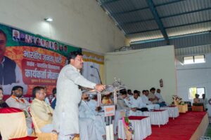 कळंब (राजेंद्र बारगुले ) एम,आय,डी,सी,डिकसळ येथे भारतीय जनता पार्टीच्या वतीने कळंब धाराशिव विधानसभा मतदारसंघातील कार्यकर्त्यांचा मेळावा दि.२९ डिसेंबर २०२३ रोजी अतिशय उत्साह पूर्ण वातावरणात पार पडला.या बैठकीस तुळजापूरचे आमदार राणाजगजितसिंह पाटील, जिल्हाअध्यक्ष संताजी चालुक्य,नितीनजी काळे,दत्तभाऊ कुलकर्णी,राजसिंह राजेनिंबाळकर,जि.प.माजी अध्यक्ष अस्मिता कांबळे,भाजपा तालुकाध्यक्ष अध्यक्ष अजित (दादा) पिंगळे यांच्या प्रमुख उपस्थितीत हा कार्यकर्ता मेळावा संपन्न झाला.या कार्यकर्ता मेळाव्या दरम्यान राष्ट्रीय चर्मकार महासंघाचे मराठवाडा युवक अध्यक्ष विकास कदम यांचा देखील मान्यवरांच्या उपस्थितीत व मार्गदर्शनाखाली भारतीय जनता पार्टीमध्ये जाहीर प्रवेश घेण्यात आला. या कार्यकर्ता मेळाव्यासाठी तालुक्यातील तसेच विधानसभा मतदारसंघातील कार्यकर्त्यांनी मोठ्या संख्येने हजेरी लावली होती.