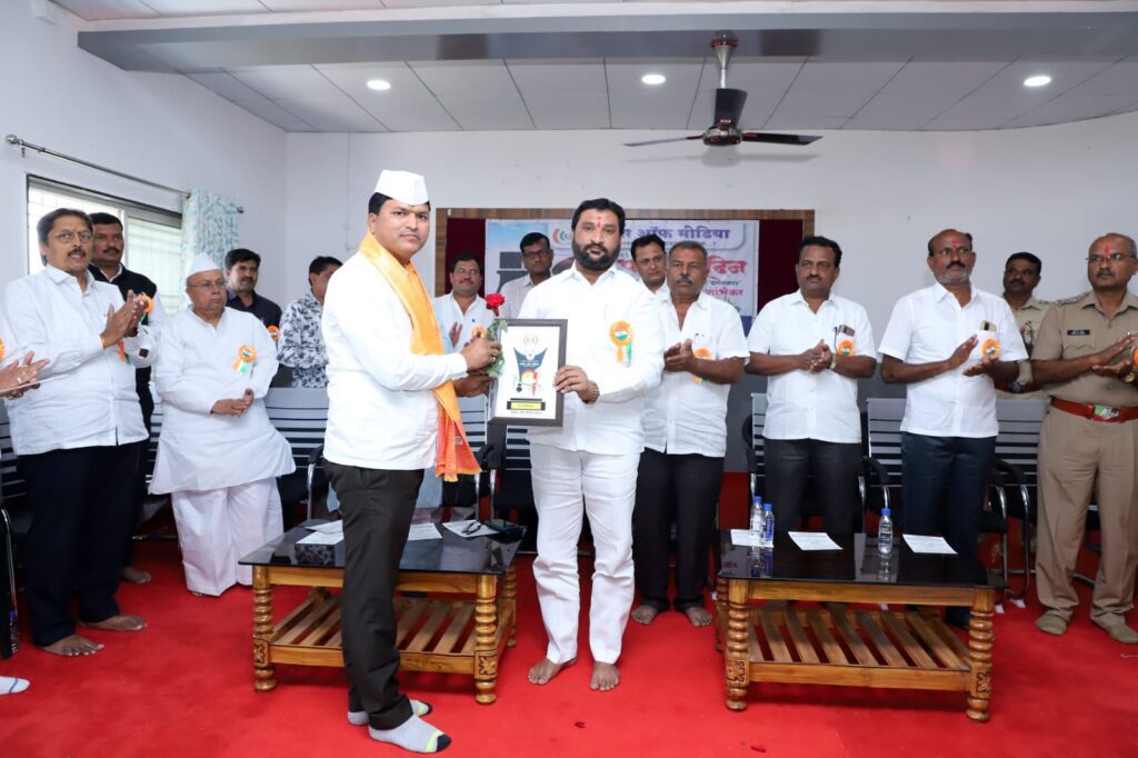 धाराशिव – पत्रकार दिनाचे औचित्य साधून व्हाईस ऑफ मिडिया कळंब शाखेच्या वतीने पत्रकार व विविध क्षेत्रातील कार्य करणाऱ्या व्यक्तींचा गुणगौरव सोहळा कळंब येथील वेद शैक्षणिक संकुल येथे पार पडला. यामध्ये राजकीय कट्टा या सोशल मीडिया वृत्तवाहिनीचे संपादक तथा भैरवनाथ अध्यापक विद्यालयाचे प्राचार्य सतिश मातने यांचा देखील पत्रकारिता क्षेत्रातील कार्याबद्दल श्री सिद्धिविनायक परिवाराचे प्रमुख दत्ताभाऊ कुलकर्णी यांच्या हस्ते सन्मान करण्यात आला.या कार्यक्रमाच्या अध्यक्षस्थानी मोहेकर मल्टीस्टेट व ऍग्रो प्रोड्यूसर कंपनीचे चेअरमन हनुमंत मडके हे होते तर यावेळी व्यासपीठावर कळंबचे पोलीस उपाधिक्षक संजय पवार,अन्नदाते बंडोपंत दशरथ,व्हाईस ऑफ मिडियाचे राज्य उपाध्यक्ष अजित कुंकूलोळ, सरचिटणीस चेतन कात्रे,जिल्हाध्यक्ष हुंकार बनसोडे,आरोग्यदूत डॉ.रमेश जाधवर, प्राचार्य डॉ.साजिद चाऊस,दैनिक एकमत तालुका प्रतिनिधी सतीश टोणगे,दैनिक पुढारीचे तालुका प्रतिनिधी परमेश्वर पालकर, कळंब तालुका मराठी पत्रकार संघाचे अध्यक्ष प्रा.विलास मुळीक,कळंब तालुका पत्रकार मंडळाचे अध्यक्ष धनंजय घोगरे,कळंब पोलीस स्थानकाचे श्री कांबळे यांची उपस्थिती होती. यावेळी कळंब तालुक्यातील पत्रकारिता सामाजिक क्षेत्र उद्योग वैद्यकीय व्यवसाय या क्षेत्रातील उल्लेखनीय कार्य करणाऱ्या व्यक्तींचा ही गुणगौरव करण्यात आला.