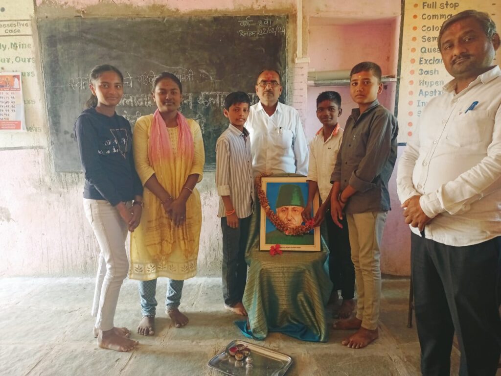यावेळी त्यांच्या प्रतिमेस पुष्पहार घालून पूजन करण्यात आले. तसेच त्यांच्या कार्याची माहिती मुख्याध्यापक सुरेश टेकाळे यांनी दिली.