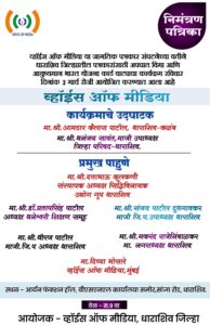 धाराशिव (साक्षी पावनज्योत) – व्हाईस ऑफ मीडिया या जागतिक पत्रकार संघटनेच्या वतीने धाराशिव जिल्ह्यातील पत्रकारांचा अपघात विमा व आयुष्यमान भारत योजना कार्ड वाटप कार्यक्रमाचे आयोजन रविवार दिनांक ३ मार्च रोजी करण्यात आले आहे. धाराशिव जिल्ह्यातील पत्रकारांचा अपघात विमा व आयुष्यमान भारत कार्ड योजना वाटप करण्यासाठी व्हॉईस ऑफ मीडियाने गेल्या वर्षापासून प्रारंभ केला आहे. गतवर्षी या योजने अंतर्गत जिल्ह्यातील २५० पत्रकारांचा अपघात विमा उतरविण्यात आला होता. त्याची मुदत संपली असून यावर्षी या अपघात विमा बरोबरच आयुष्यमान भारत कार्डचे देखील वाटप करण्यात येणार आहे. या कार्यक्रमाचे उद्घाटक म्हणून आमदार कैलास पाटील व जिल्हा परिषदेचे माजी उपाध्यक्ष धनंजय सावंत तर कार्यक्रमाचे प्रमुख पाहुणे म्हणून सिद्धिविनायक उद्योग समूहाचे संस्थापक अध्यक्ष दत्ताभाऊ कुलकर्णी, धनेश्वरी शिक्षण समूहाचे अध्यक्ष डॉ.प्रतापसिंह पाटील, जिल्हा परिषदेचे माजी उपाध्यक्ष संजय पाटील दुधगावकर, माजी नगराध्यक्ष मकरंदराजे निंबाळकर, माजी जिल्हा परिषद अध्यक्ष धीरज पाटील व व्हाईस ऑफ मीडियाच्या राष्ट्रीय महासचिव दिव्या भोसले आदी उपस्थित राहणार आहेत. हा कार्यक्रम धाराशिव शहरातील सांजा रोडवरील बीएसएनएल ऑफिस समोरील आर्यन फंक्शन हॉलमध्ये सकाळी ९ वाजता सुरू होणार आहे. या कार्यक्रमास जिल्ह्यातील सर्व पत्रकारांनी उपस्थित रहावे, असे आवाहन व्हाईस ऑफ मीडियाच्या वतीने करण्यात आले आहे.