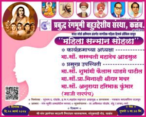 कळंब – प्रबुद्ध रंगभूमी बहूउद्देशीय संस्था कळंब आयोजित भारत जोडो अभियान अंतर्गत जागतिक महिला दिनाचे औचित्य साधत महिला सन्मान सोहळा दिनांक १२ मार्च २०२४ रोजी दुपारी ३.३० वाजता श्री संत ज्ञानेश्वर निराधार माऊली बालकाश्रम,तांदुळवाडी रोड,कळंब येथे आयोजित करण्यात आला आहे. या सोहळ्यात भजनी मंडळातील महिलांना सन्मानपत्र देऊन सन्मानित करण्यात येणार आहे.या कार्यक्रमाच्या अध्यक्षस्थानी सौ.सरस्वती महादेव आडसूळ या राहणार असून सौ.शुभांगी कैलास घाडगे पाटील,प्रा.डॉ.सौ.मीनाक्षी श्रीधर भवर,माजी सरपंच अनुराधा हरिभाऊ कुंभार यांची प्रमुख उपस्थिती राहणार आहे. तरी या कार्यक्रमासाठी भजनी महिला मंडळातील महिला कलावंतांनी हजर राहावे असे आवाहन संस्थेचे अध्यक्ष सुभाष द.घोडके व ह.भ.प महादेव महाराज आडसूळ यांनी केले आहे.