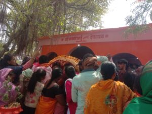 पिंपळगाव (डोळा) (राजेंद्र बारगुले ) – कळंब तालुक्यातील पिंपळगाव (डोळा) येथे भवानी आई (अंबाबाई) देवीची यात्रा आष्टमीला दिनांक १ मे २०२४ रोजी मोठया उत्साहात संपन्न झाली. दरवर्षी खूप मोठ्या प्रमाणात इथे यात्रा भरत असते. १२ बैलगाडया ओढल्यानंतर पालखीची मिरवणूक निघते. बारा बैलगाड्या ओढण्याचा मान रावण कांबळे यांच्यानंतर बापूराव कांबळे यांच्याकडे पारंपारिक पद्धतीने चालत आला आहे. काही वर्षे टेकाळे यांनी बैलगाड्या ओढल्या होत्या. यंदा बंटी टेकाळे यांनी बापू कांबळे यांना सहकार्य केले. परिसरातील भाटशिरपुरा, मंगरूळ,डिकसळ,करंजकल्ला या गावातून यात्रेसाठी प्रचंड प्रतिसाद मिळाला.