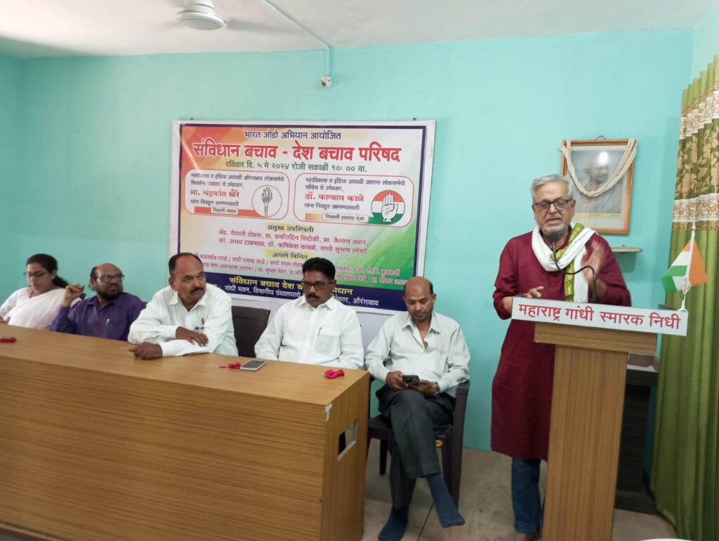 संभाजी नगर – भाजप सरकारचे गेले दहा वर्षाच्या कार्यकाळ पाहिल्यास,भारतीय संविधानास सर्वात जास्त धोका भाजप आघाडी सरकारकडून असल्याने, लोकसभा निवडणुकीत इंडिया – महा विकास आघाडीचे उमेदवार निवडूण आणावेत असे आवाहन, आज महात्मा गांधी भवन येथे झालेल्या संविधान बचाव देश बचाव परिषदेतील सर्वच वक्त्यांनी केले. असंघटित कष्टकऱ्यांचे नेते व जय किसान आंदोलन – स्वराज अभियान चे साथी सुभाष लोमटे यांचे अध्यक्षते खाली दि.५ मे २०२४ पार पडलेल्या परिषदेस , भारतीय कम्युनिस्ट पक्षाचे अँड. अभय टाकसाळ, शेतकरी संघटनेचे प्रा. कैलास तवार, मराठा सेवा संघाच्या अड. वैशाली डोळस, अमन कमिटीचे डॉ. शेख इक्बाल मिन्ने, समाजवादी गणतंत्र पार्टीचे प्रा. प्रकाश दाणे, प्रा. झकीउद्दिन सिद्दीकी व ज्येष्ठ साहित्यिक डॉ. ऋषिकेश कांबळे यांनी मार्गदर्शन केले. सर्वच वक्त्यांनी भाजप आघाडीचे सरकारच्या कर्मांचा पंचनामा केला , ज्यास प्रामुख्याने देशाचे पंतप्रधान सर्वस्वी जबाबदार असल्याची टीका करण्यात आली. बिल्कीस बानो व उन्नाव चे बलात्कार्यांचा उदो उदो असो, मुस्लिमांचे मोबलिंचींग कडे पूर्ण डोळेझाक करणे असो, वर्षभरापूर्वी मणिपूर मध्ये कुकी महिलांवर अत्याचार करून नग्न धिंड असो, देशातील हजारो बेरोजगारांना रोजगार देणारे सार्वजनिक उद्योग मूठ भर मर्जीतील लोकांना कवडीमोल किंमतीत विकणे असो, जीवनावश्यक ( पाणी, वीज, शिक्षण, आरोग्य इ…) वस्तू – सुधांचे प्रछंन खाजगीकरण असो, …. या सर्व जन विरोधी कृत्यामुळे सर्वसामान्यांचे जगणे कठिण होवून बसले आहे.आणि म्हणून येणाऱ्या लोकसभा निवडणुकीत इंडिया – महा विकास आघाडीचे औरंगाबाद चे शिवसेना (ऊबाठा) चंद्रकांत खैरे आणि जालना लोकसभेचे, काँग्रेस चे उमेदवार डॉ कल्याण काळे यांना प्रचंड मताने निवडूण आणण्यासाठी, सर्वांनी तन – मन – धना ने प्रयत्न करावेत असे आवाहन सर्वच वक्त्यांनी केले.