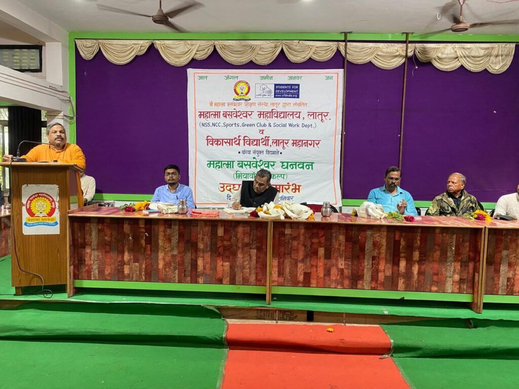 लातूर –आजच्या तरुणांमध्ये प्रचंड ऊर्जा शक्ती असते त्यामूळे देशाचा शाश्वत विकास करण्याच्या प्रक्रियेत तरुणांचा सहभाग वाढला पाहिजे असे प्रतिपादन अखिल भारतीय विद्यार्थी परिषदेचे पश्चिम क्षेत्र संघटन मंत्री देवदत्त जोशी यांनी केले. महात्मा बसवेश्वर महाविद्यालयातील राष्ट्रीय सेवा योजना, राष्ट्रीय छात्र सेना, क्रीडा विभाग, समाजकार्य विभाग आणि विकासार्थ विद्यार्थी लातूर महानगर यांच्या संयुक्त विद्यमाने महात्मा बसवेश्वर घनवन (मियावाकी) प्रकल्पाच्या उद्घाटन प्रसंगी ते उद्घाटक म्हणून बोलत होते. या कार्यक्रमाचे अध्यक्षस्थानी महाविद्यालयाचे प्रभारी प्राचार्य डॉ. संजय गवई हे होते तर विचारपीठावर नगरपालिका प्रशासन विभाग लातूरचे जिल्हा सहआयुक्त रामदास कोकरे, राष्ट्रीय छात्र सेनेचे डॉ. कॅप्टन बाळासाहेब गोडबोले, विकासार्थ विद्यार्थी राज्य समन्वयक पवन बेळकोणे, प्रांत समिती सदस्य अजय स्वामी आदीची उपस्थिती होती. कार्यक्रमाच्या प्रारंभी अखिल भारतीय विद्यार्थी परिषदेच्या गीताने सुरुवात झाली यावेळी मान्यवरांच्या शुभहस्ते प्रतिमा पूजन आणि दीप प्रजनन झाले पुढे बोलताना देवदत्त जोशी म्हणाले की, युवक हे देशाचे शिल्पकार आहेत. त्यांच्या उसळत्या रक्ताला योग्य दिशा आणि गती दिल्यास देशातील विधायक असे कार्य घडू शकते. महाविद्यालयीन विद्यार्थ्यांना वेळोवेळी मूल्यांची जाणीव करून देऊन जल, जंगल, जमीन, जनावर आणि जन याबाबतीत शाश्वत विकास करण्याकरिता तरुणांचा सहभाग अत्यंत महत्त्वाचा आहे. तरुणांमध्ये आव्हाने स्वीकारण्याची क्षमता असते त्या क्षमतांचा वापर करून स्वतःला आत्मनिर्भर केले पाहिजे असेही ते म्हणाले. यावेळी रामदास कोकरे म्हणाले की, वृक्षारोपण आणि वृक्ष संवर्धन ही काळाची गरज बनली आहे. जैव विविधा टिकून ठेवायचे असेल तर मियावाकी, देवराई, ट्री कॉरिडोर, वृक्ष आच्छादने यासारख्या उपक्रमांची आवश्यकता आहे असे ते म्हणाले. अध्यक्षीय समारोप करताना प्रभारी प्राचार्य डॉ. संजय गवई म्हणाले की, मियावाकी प्रकल्प हा महाविद्यालय आणि परिसरासाठी वरदान आहे. परिसरातील विविध प्रदूषण रोखले जाऊन परिसरातील ऑक्सिजनच्या प्रमाणात वाढ होणार आहे. निसर्गाचे संरक्षण हे प्रत्येक तरुणांचे कर्तव्य आहे. जल, जंगल, जमीन, जनावर यांचे संरक्षण व संवर्धन झाल्यास मानवाचे दैनंदिन जीवन हे अधिक सुखकर होईल त्यासाठी सामूहिक प्रयत्नाची नितांत आवश्यकता आहे असेही ते म्हणाले या कार्यक्रमाचे प्रास्ताविक प्रवण बेळकोने यांनी केले तर सूत्रसंचालन डॉ. मनोहर चपळे यांनी केले तर आभार अजय स्वामी यांनी मानले. या कार्यक्रमाच्या यशस्वीकरिता राष्ट्रीय सेवा योजनेचे डॉ. रत्नाकर बेडगे, डॉ. शिवप्रसाद डोंग