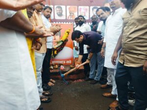 कळंब – साहित्यसम्राट लोकशाहीर डॉ.अण्णाभाऊ साठे यांच्या जयंती निमित्त कळंब शहरातील अण्णाभाऊ साठे चौक येथे त्यांच्या प्रतीमेस पुष्पहार अर्पण करून अभिवादन केले आणि चौक सुशोभीकरणाचा शुभारंभ केला. चौकाच्या सुशोभीकरणासाठी आमदार कैलास पाटील यांच्या स्थानिक आमदार विकास निधीतून सुमारे १० लक्ष रुपयांचा निधी उपलब्ध करुन देण्यात आला आहे.लवकरच कळंबच्या सौदर्यांत भर घालण्यासाठी सुसज्ज आणि आकर्षक असा चौक पूर्ण होईल.यावेळी उपस्थित कळंब-धाराशिव विधानसभा अध्यक्ष भैय्या निरफळ,लहुजी शक्ती सेनेचे प्रदेश उपाध्यक्ष रोहित खलसे,साहित्यरत्न लोकशाहीर अण्णाभाऊ साठे स्मारक समिती अध्यक्ष रोहित कसबे,उपाध्यक्ष अविनाश वैरागी, क्रम कमिटीचे सचिव प्रसिद्धी प्रमुख उमेश देडे,लहुजी शक्ती सेनेचे महाराष्ट्र खजिनदार सागर कसबे,विकास गायकवाड सर्व महिला व समाजातील सर्व समाज बांधव उपस्थित होते.