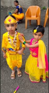 याप्रसंगी बालकांनी बालश्रीकृष्ण,गोप,गोपिका, सवंगडी यांची वेशभूषा,मोरपीस असलेला मुकुट,मुरली वाजवीत असलेला बालश्रीकृष्ण त्याच्याभोवती फेर धरून गोपिका नृत्य करीत आहेत तसेच दहीहंडी फोडत आहेत हा कलाप्रकार सादर केला. या कार्यक्रम यशस्वीतेसाठी सहाय्यक शिक्षिका सना पठान,किरन काले,मोहिनी देवकते,नमिता साखरे व प्रमोद चव्हाण यांनी परिश्रम घेतले.