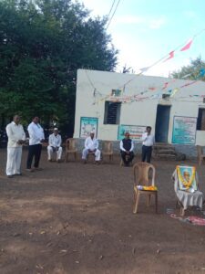 कळंब – शिक्षण महर्षी ज्ञानदेव मोहेकर गुरुजींच्या स्वप्नपूर्तीसाठी ज्ञान प्रसारक मंडळ,येरमाळाचे कर्तव्यदक्ष सचिव डॉ.अशोकराव मोहेकर यांच्या प्रेरणेने मुख्याध्यापक आनंद रामटेके यांच्या मार्गदर्शनाखाली भूम तालुक्यातील आष्टा येथील विद्यामंदिर हायस्कुल येथे दि.१७ सप्टेंबर २०२४ रोजी मराठवाडा मुक्तीसंग्राम दिन उत्साहात साजरा करण्यात आला. यावेळी स्वातंत्र्य सैनिक गोविंदराव श्राफ यांच्या प्रतिमेस सुभेदार प्रमोद चंद्रकांत जाधव यांच्या हस्ते पुष्पहार अर्पण करुन ध्वजारोहण करण्यात आले. यावेळी विद्यामंदिर हायस्कूलचे मुख्याध्यापक आनंद रामटेके यांनी विद्यार्थ्यांना मराठवाडा मुक्तीसंग्रामात स्वातंत्र्य सैनिकांनी केलेले योगदान सांगितले. यावेळी शालेय व्यवस्थापन समितीचे अध्यक्ष चंद्रकांत काकडे,बाबुराव लोखंडेसह गावातील प्रतिष्ठित नागरिक,सहशिक्षिक नामदेव अंनत्रे,शशिकांत मांजरे,संघपाल सोनकांबळे,सहशिक्षिका श्रीमती निर्मला वाघमारे,सुजितकुमार जाधव,बबन यादव आदींची उपस्थिती होती.