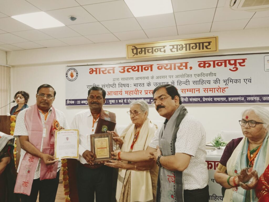 डॉ.दत्ता साकोळे यांना महावीर प्रसाद द्वीवेदी साहित्यिक पुरस्कार प्रदान