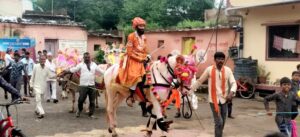 घोड्यावर बसलेले शिवाजी महाराज या मिरवणुकीचे खास आकर्षण कळंब - कळंब तालुक्यातील हासेगाव (केज) येथे बैल पोळ्याचे मानकरी लालासाहेब यादव...