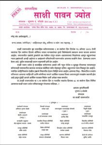 सन्माननीय वाचक / वर्गणीदार / जाहिरातदार बंधूंनो, सविनय व सप्रेम जय महाराष्ट्र! सा. साक्षी पावनज्योत या साप्ताहिक वर्तमानपत्राचा ९ वा...